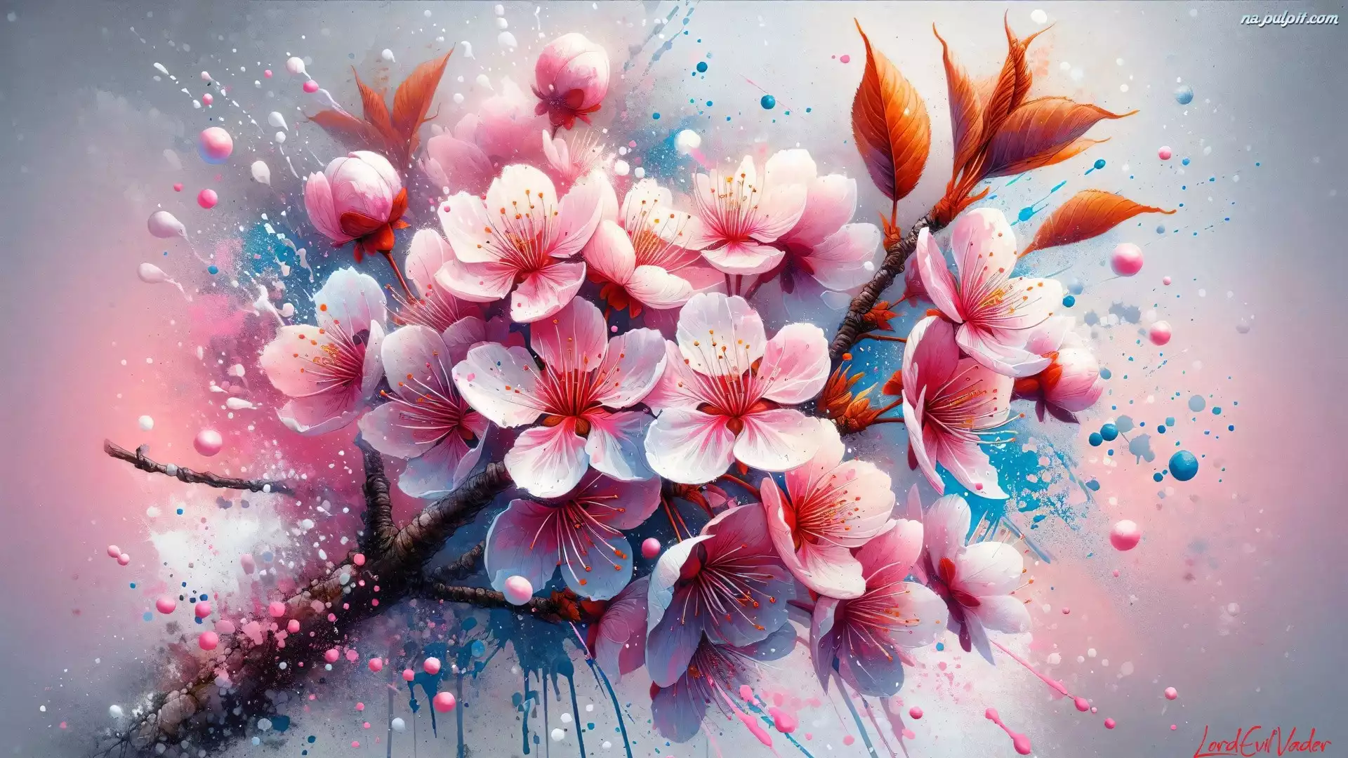 Grafika, Brązowe, Kwiaty, Gałązki, Drzewo owocowe, Biało-różowe, Listki Na Pulpit