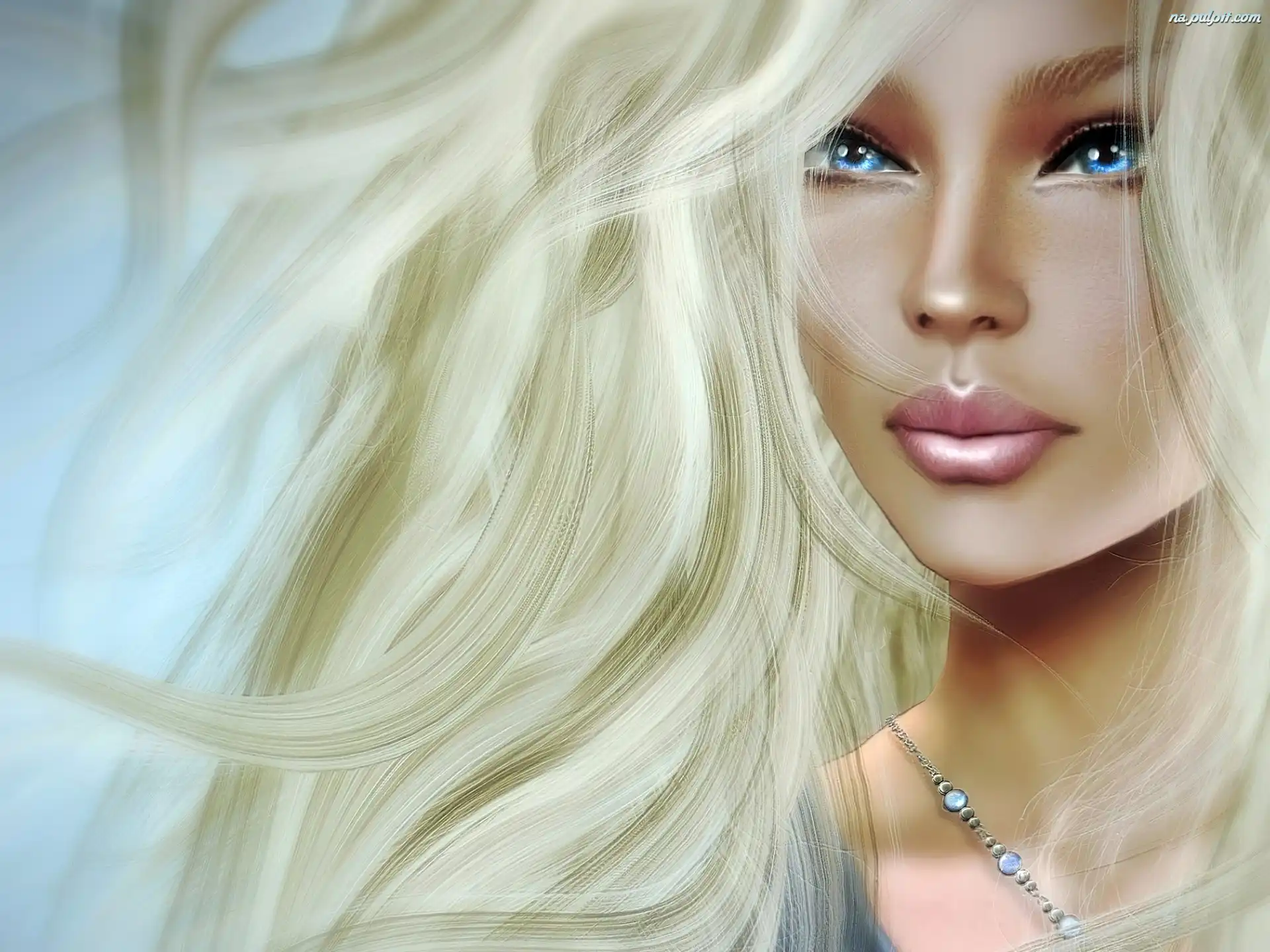 Grafika, Oczy, Błękitne, Blondynka, Portret Na Pulpit