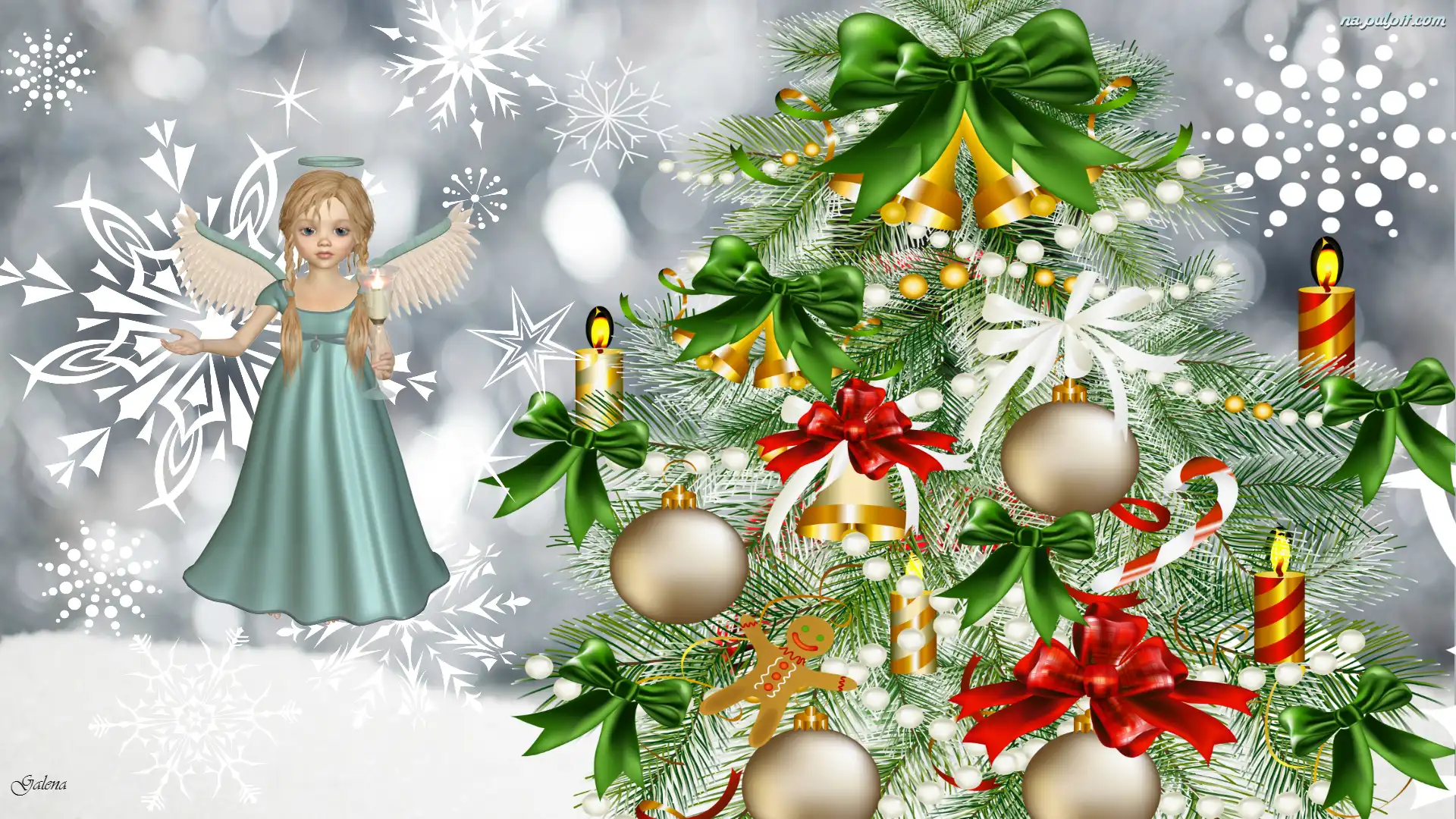 Grafika 2D, Choinka, Anioł, Boże Narodzenie Na Pulpit