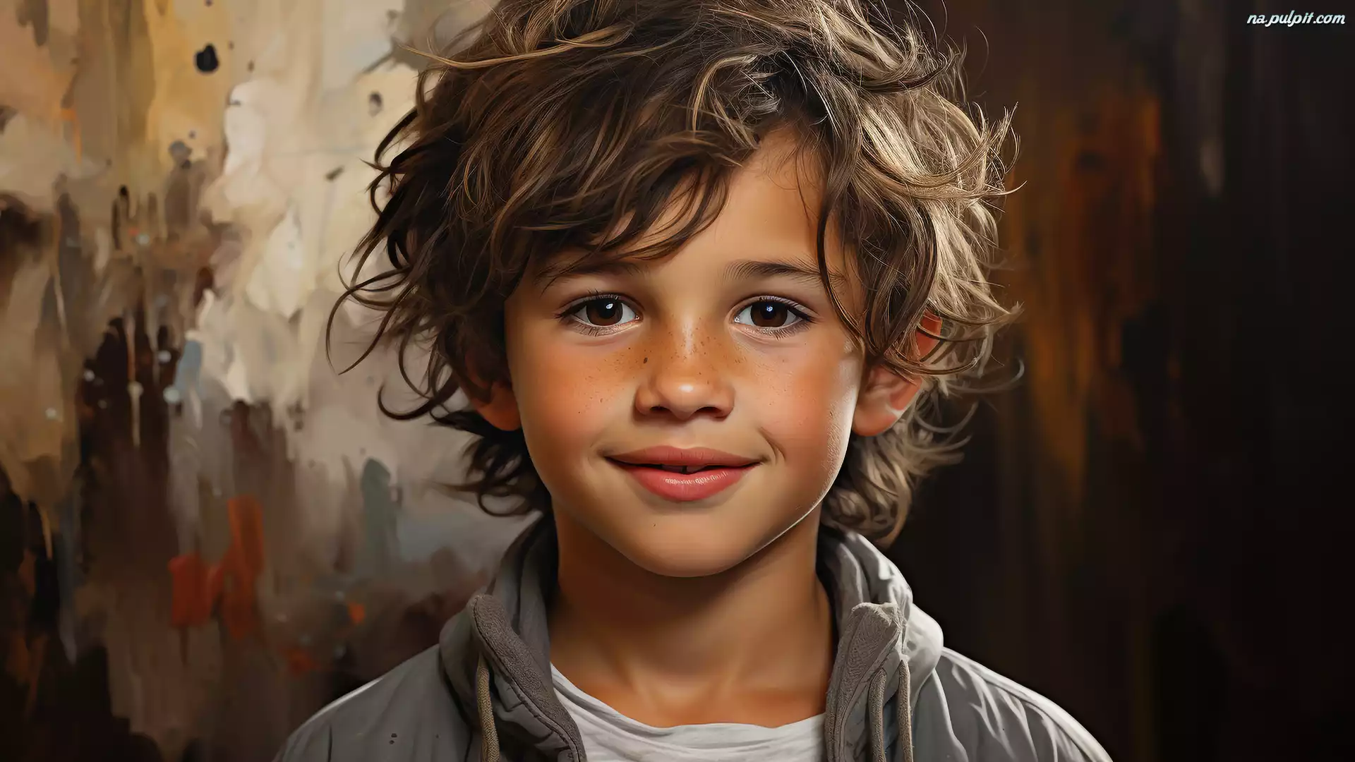 Chłopiec, Uśmiech, Spojrzenie, Grafika Na Pulpit