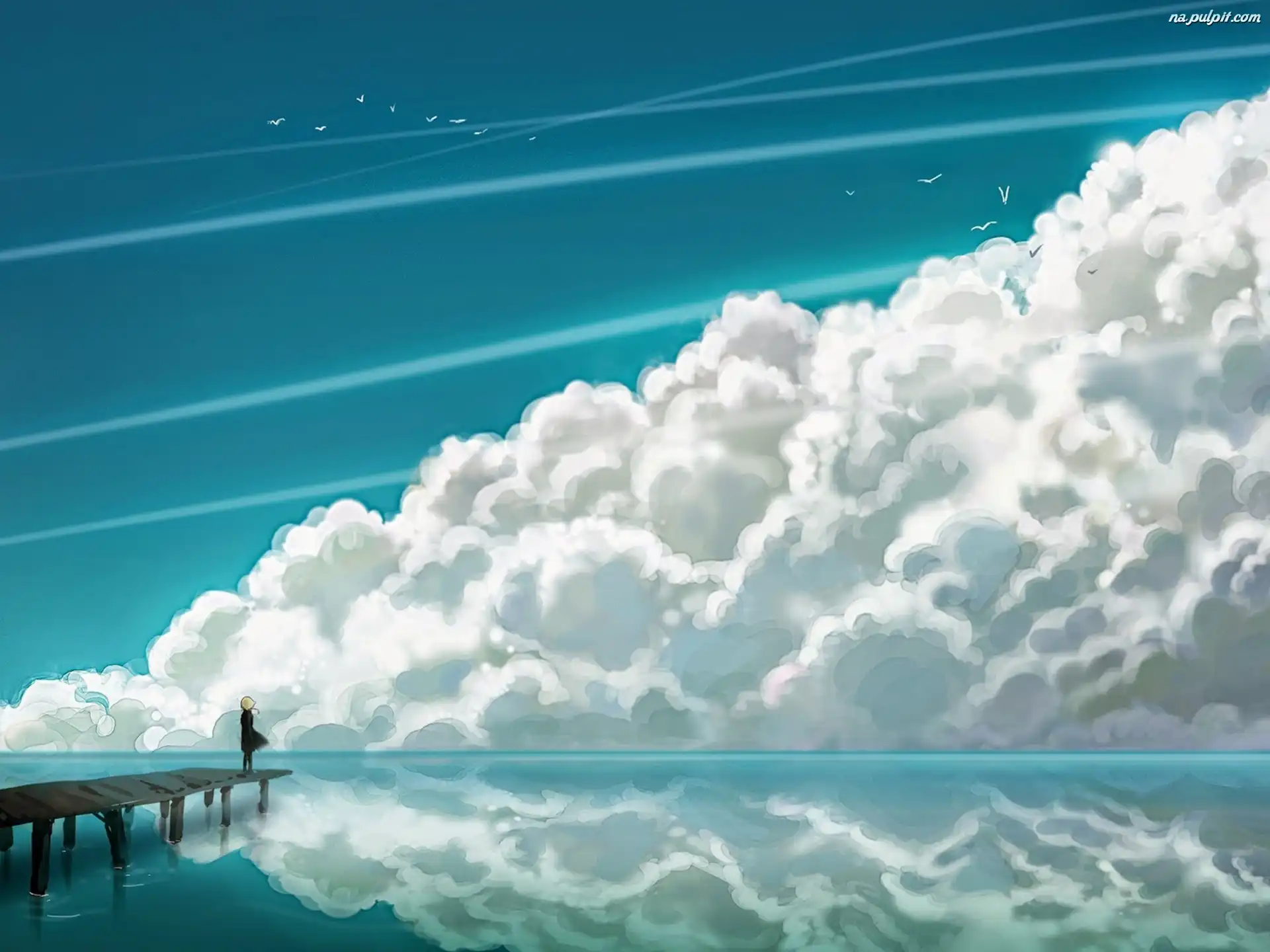 Grafika, Jezioro, Chmura, Pomost