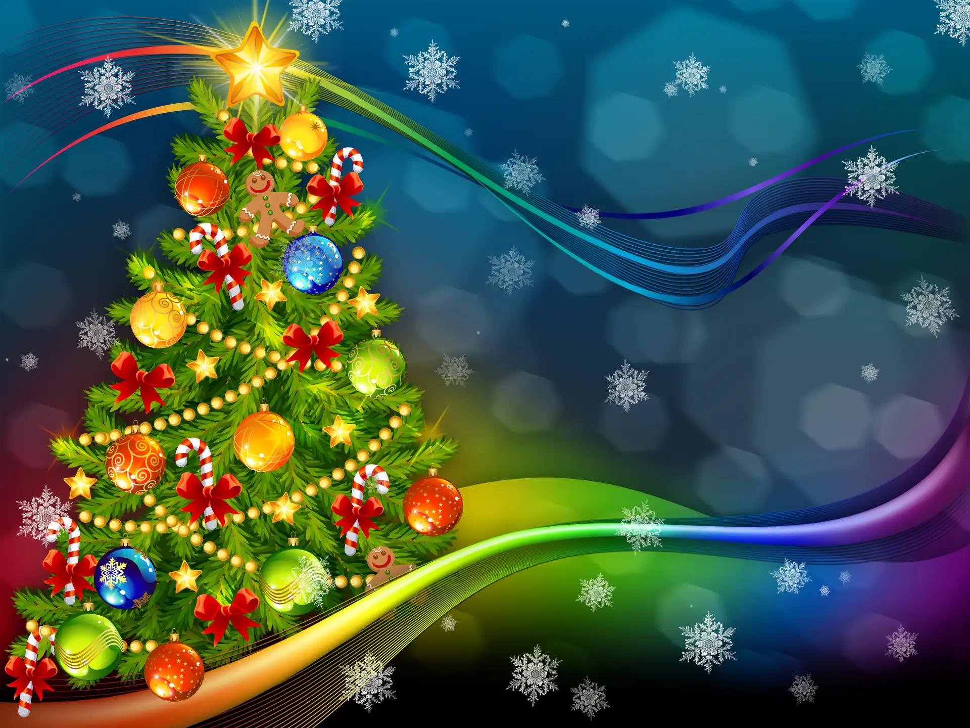 Śnieżynki, Choinka, Grafika, Ozdoby