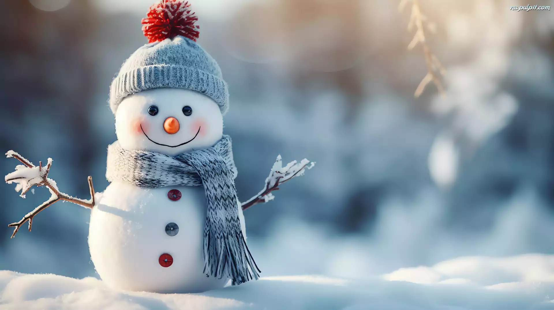 Szalik, Bałwanek, Uśmiech, Grafika AI, Czapka Na Pulpit