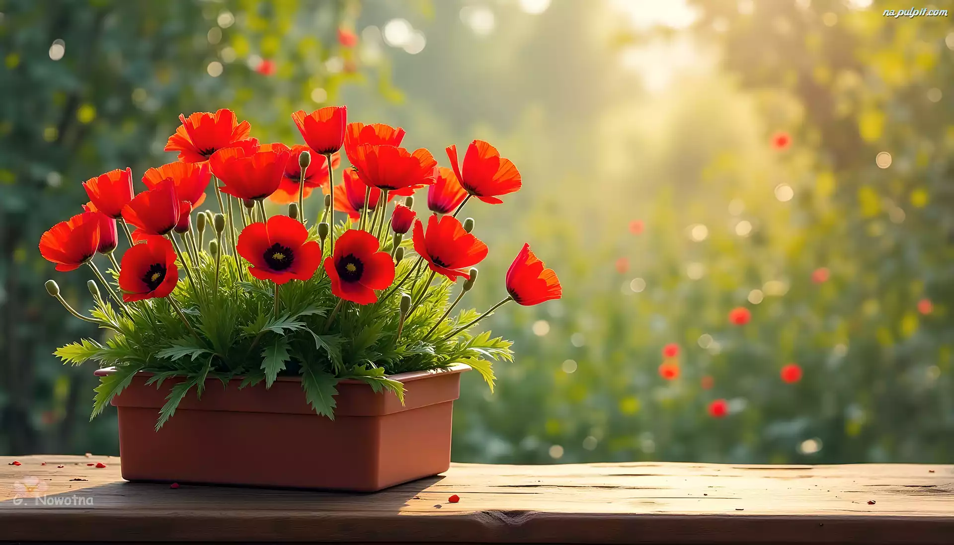 Czerwone, Maki, Doniczka, Grafika Na Pulpit