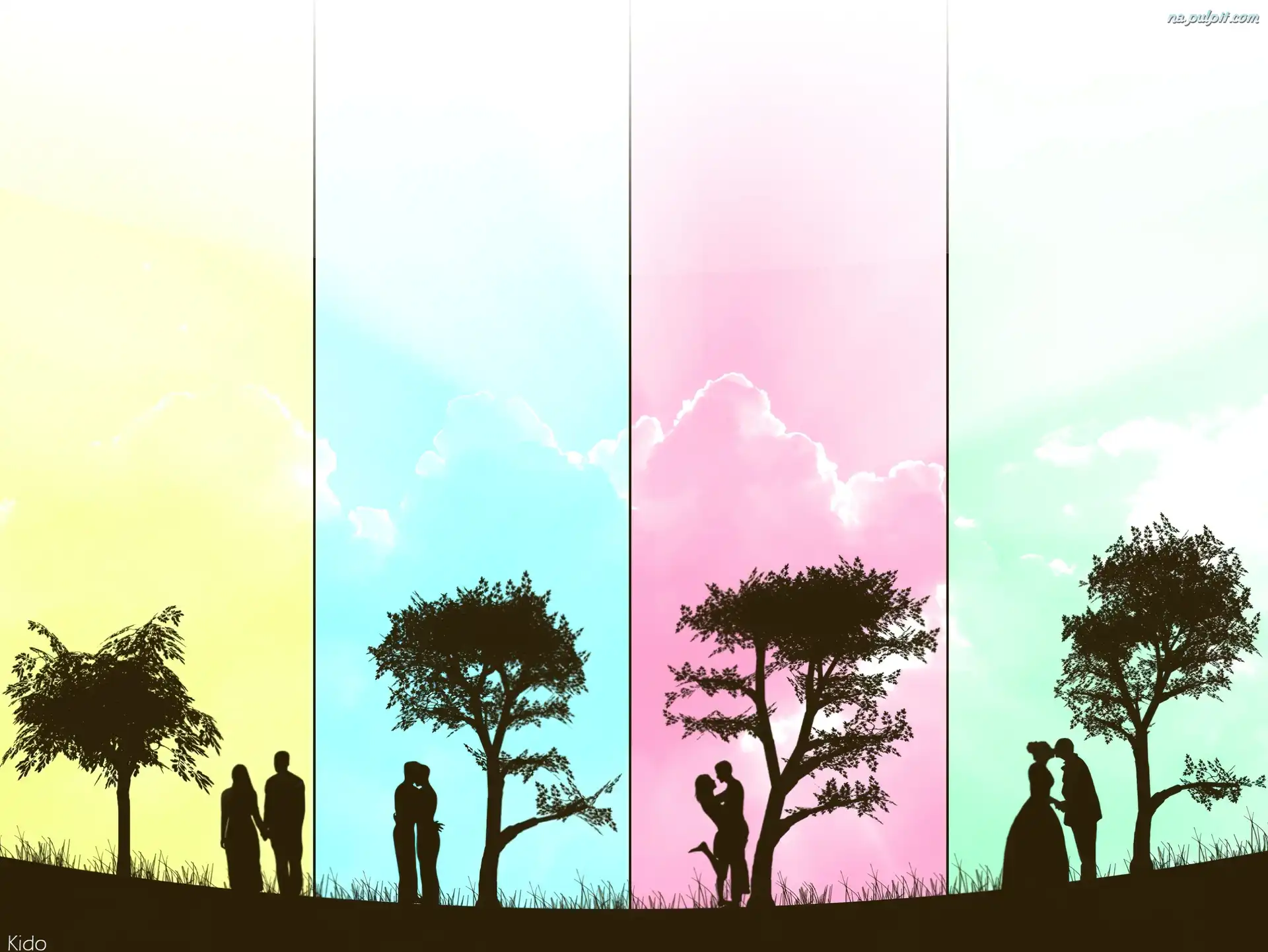 Grafika, Pary, Historyjki, Cztery, Miłosne Na Pulpit