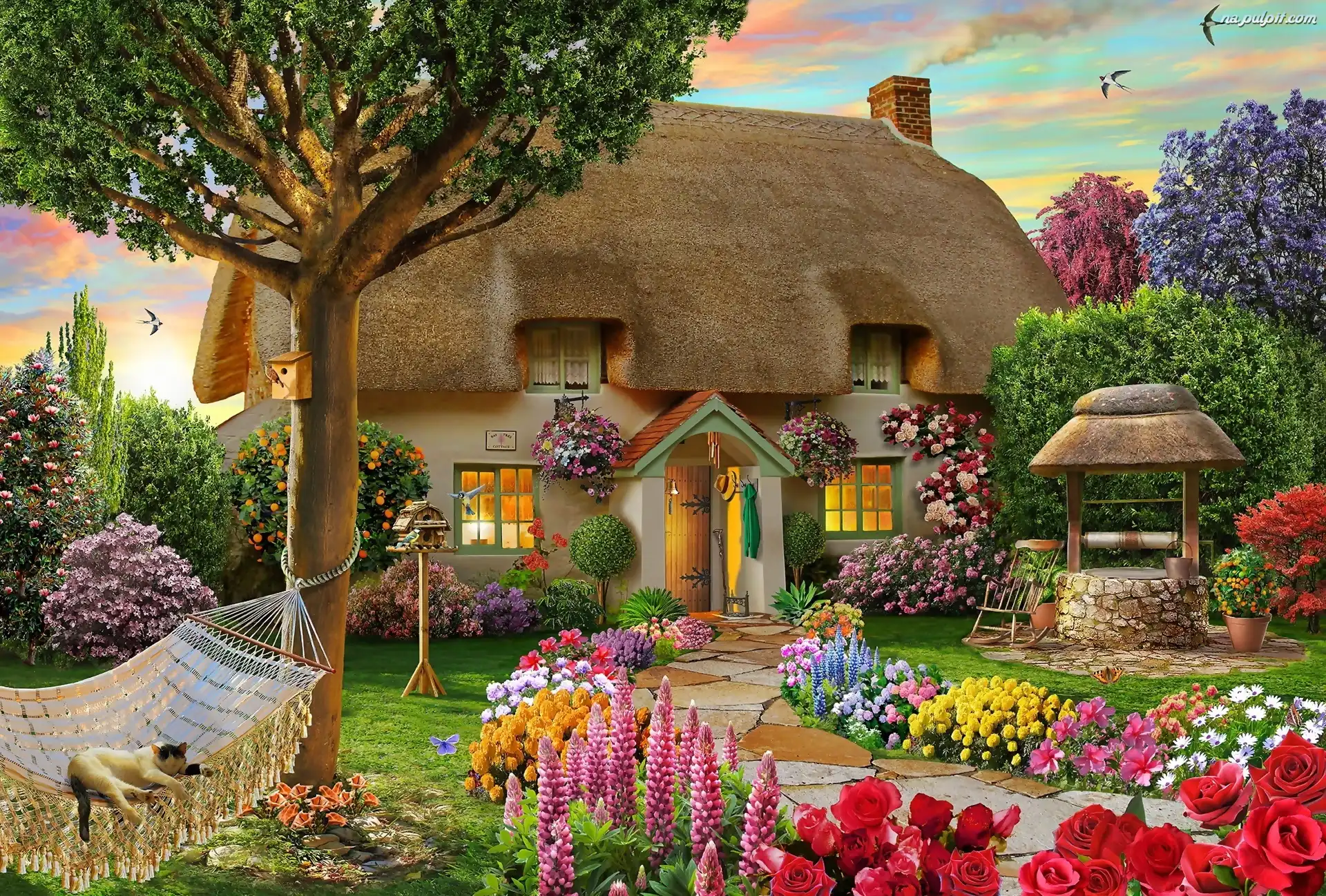 Grafika 2D, Wieś, Ogródek, Domek, Studnia Na Pulpit