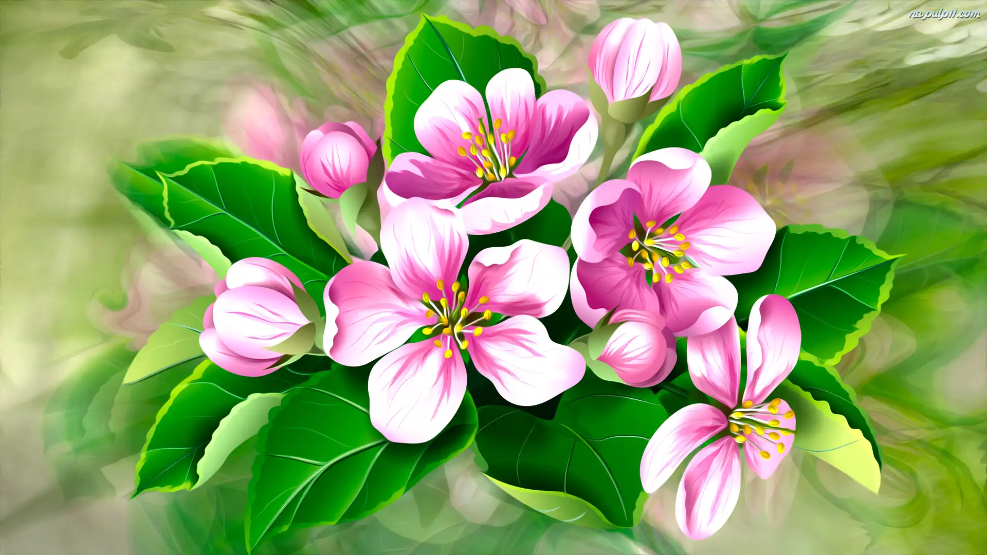 Grafika, Listki, Kwiaty, Drzewo owocowe Na Pulpit