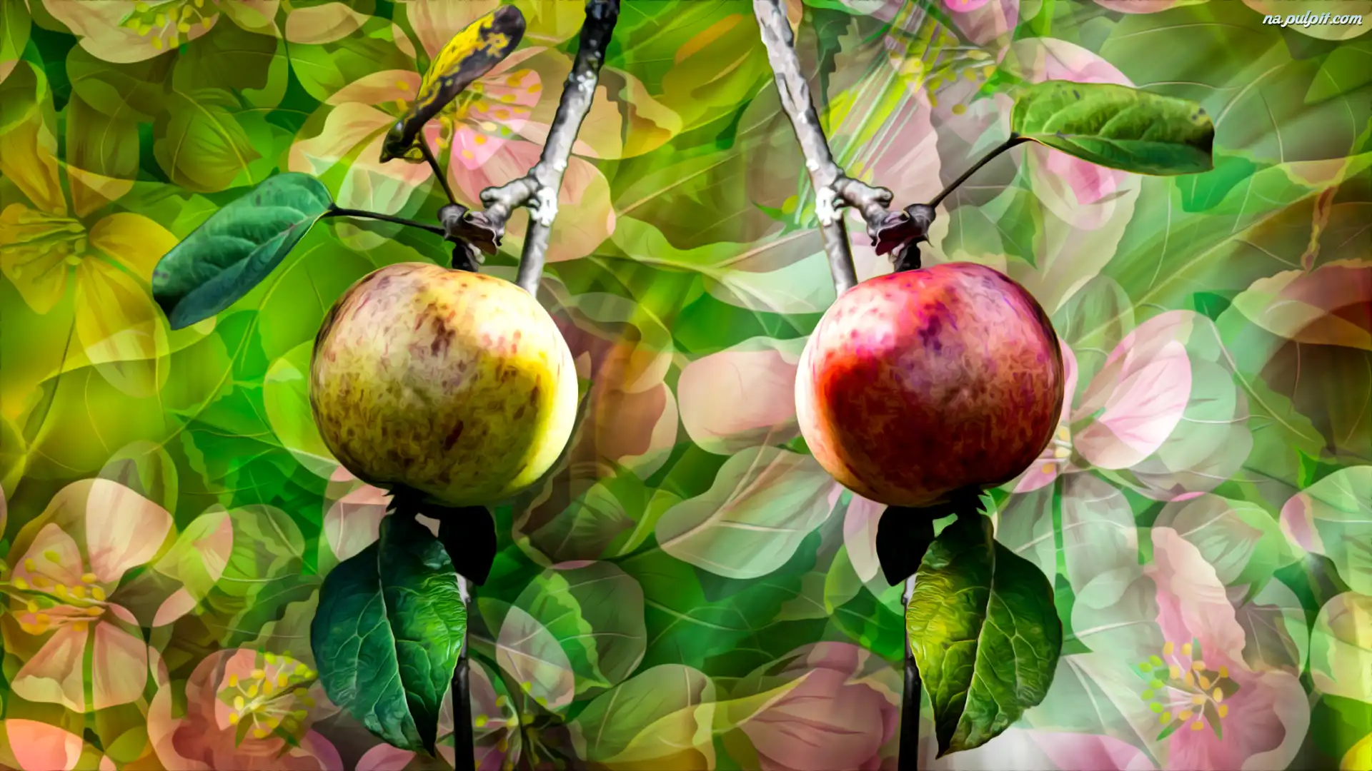 Grafika, Jabłka, Dwa, Gałązki Na Pulpit