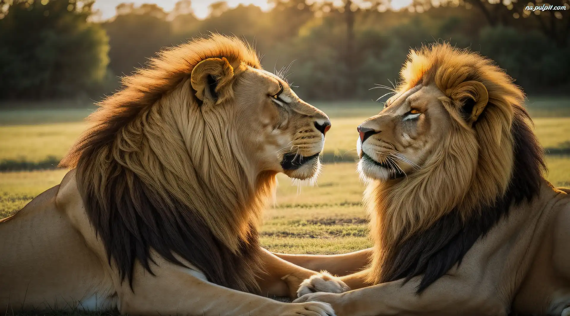 Dwa, Lwy, Łąka, Grafika Na Pulpit