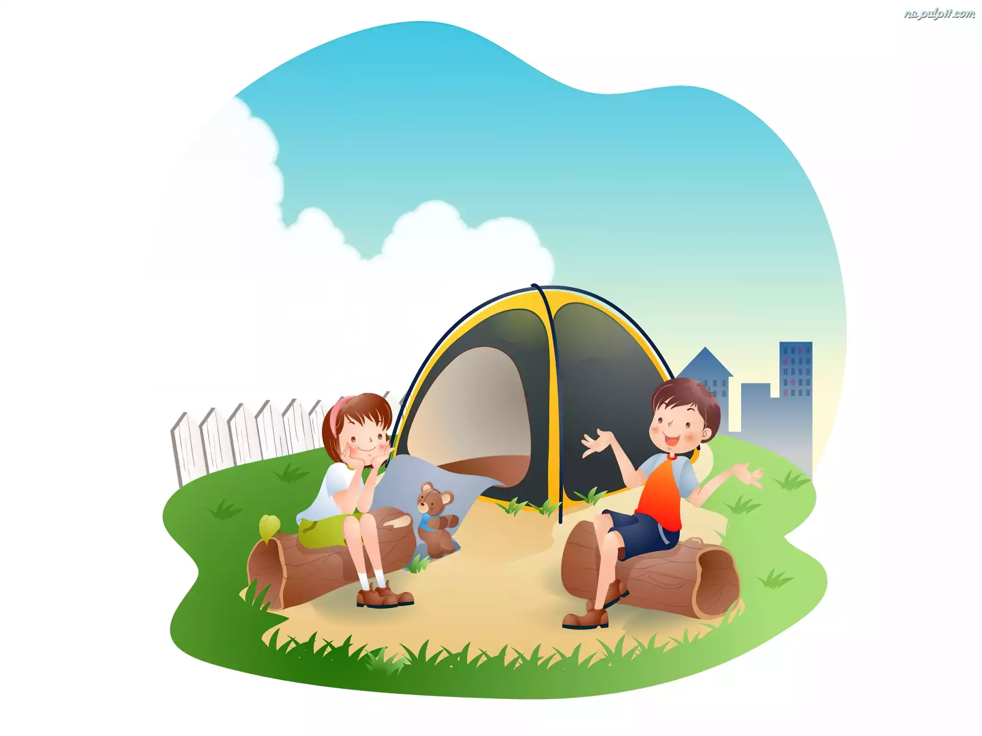 Grafika, Namiot, Dzieci, Wakacje Na Pulpit