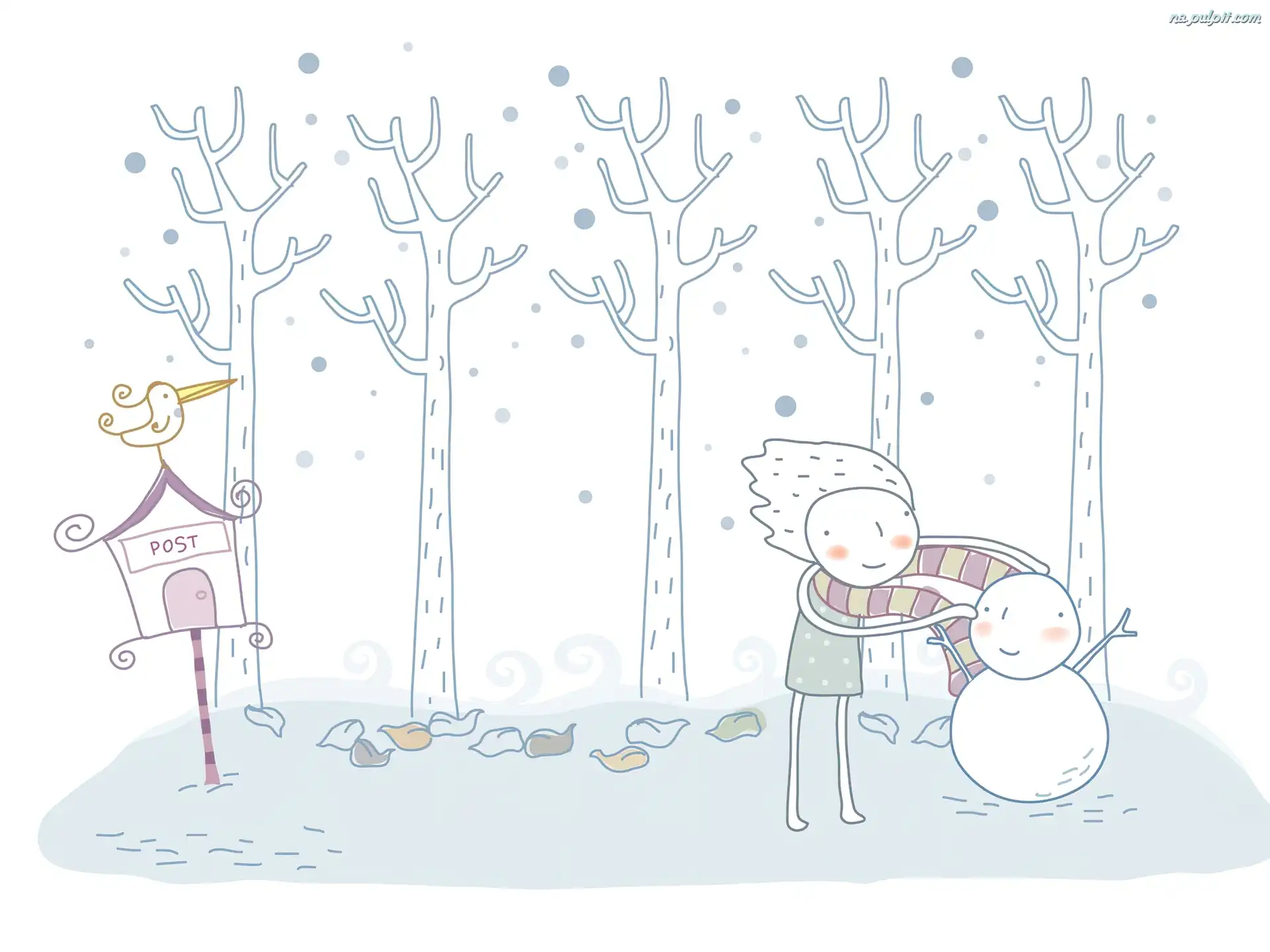 Grafika, Zima, Dziecko, Bałwan Na Pulpit