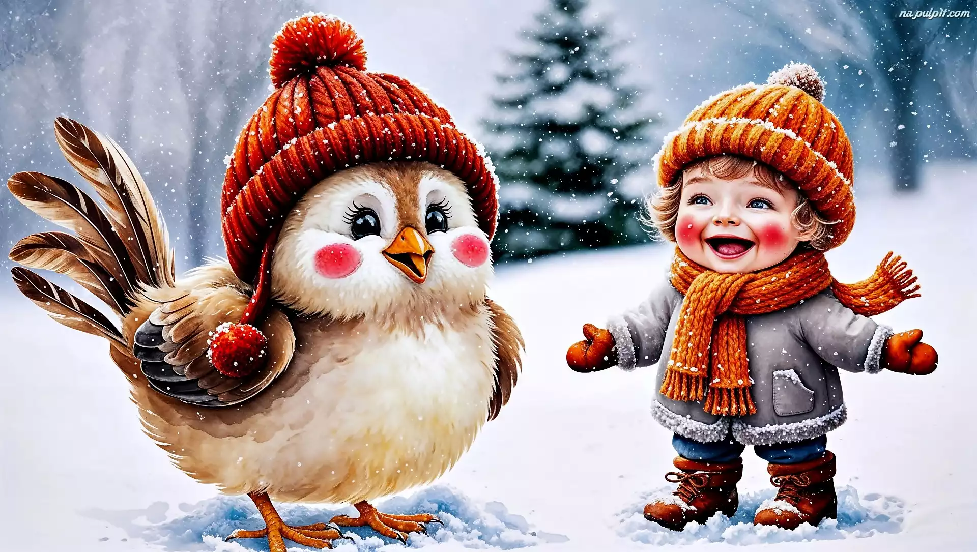 Dziecko, Ptak, Zima, Grafika Na Pulpit