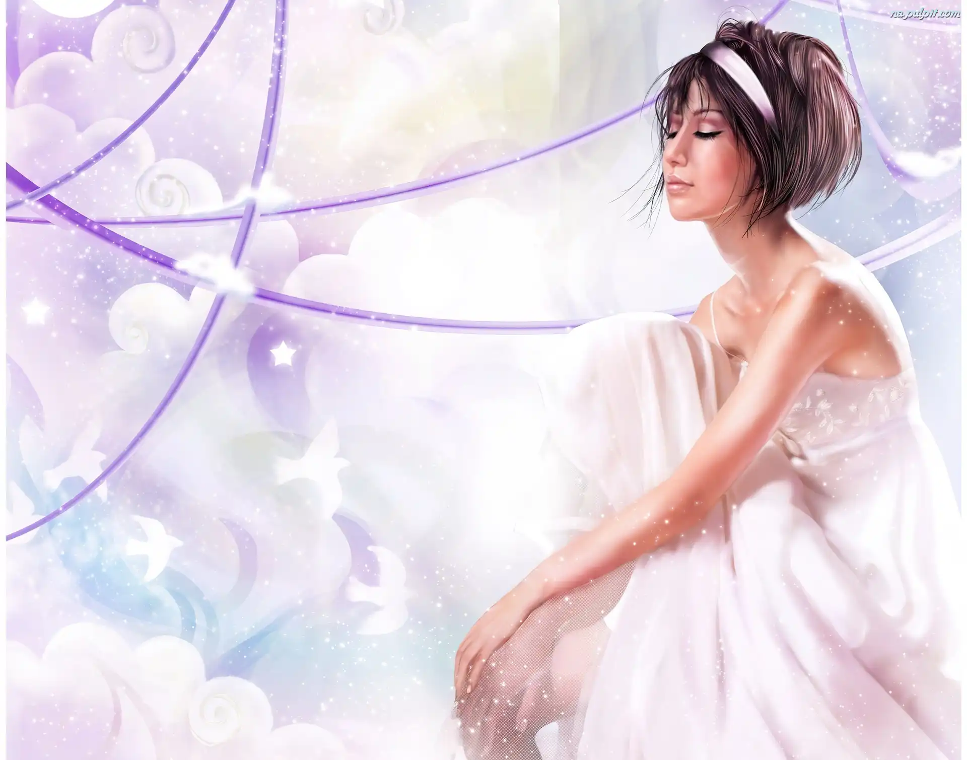 Grafika, Biała, Dziewczyna, Suknia Na Pulpit