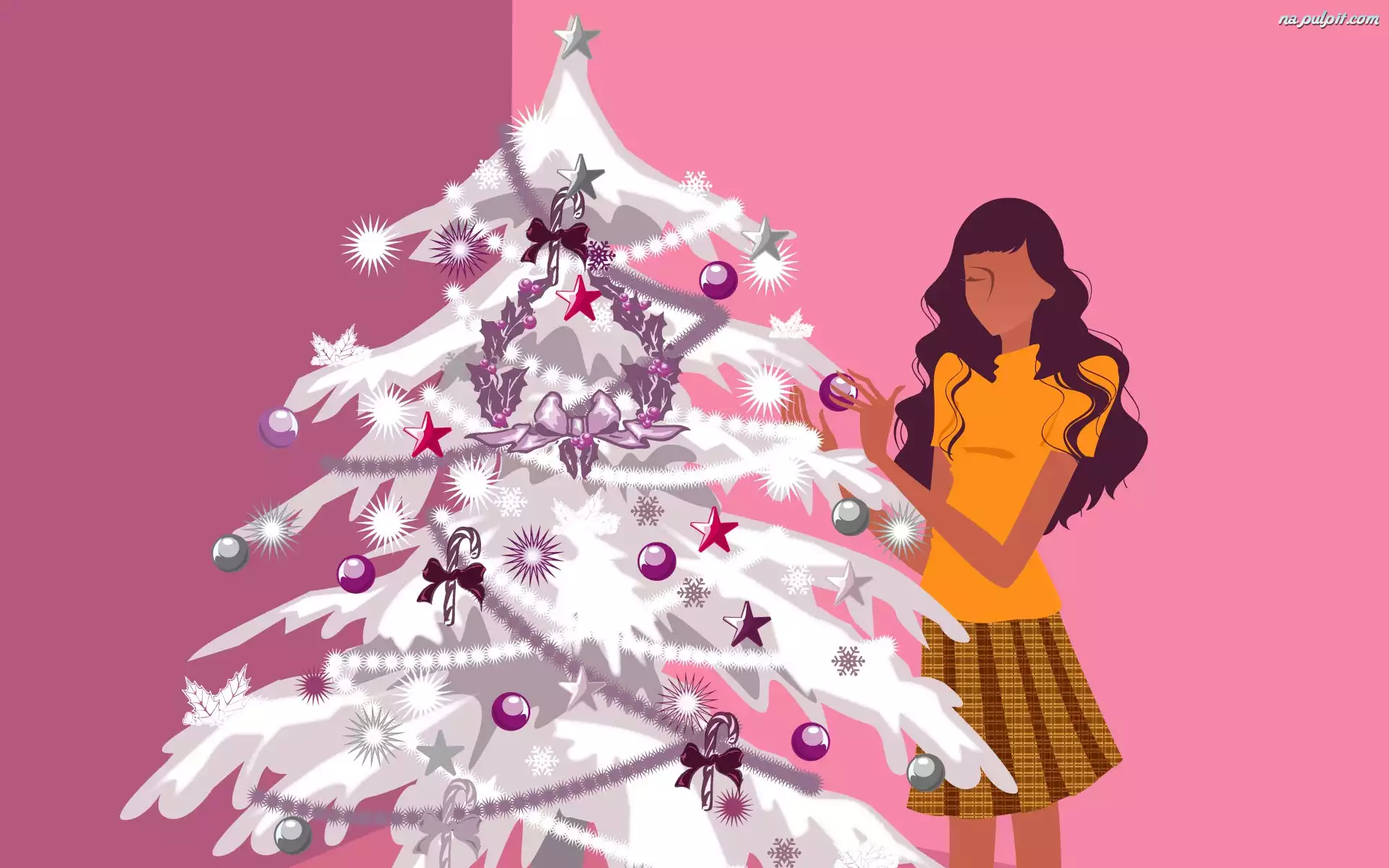 Grafika, Choinka, Dziewczyna, Święta Na Pulpit
