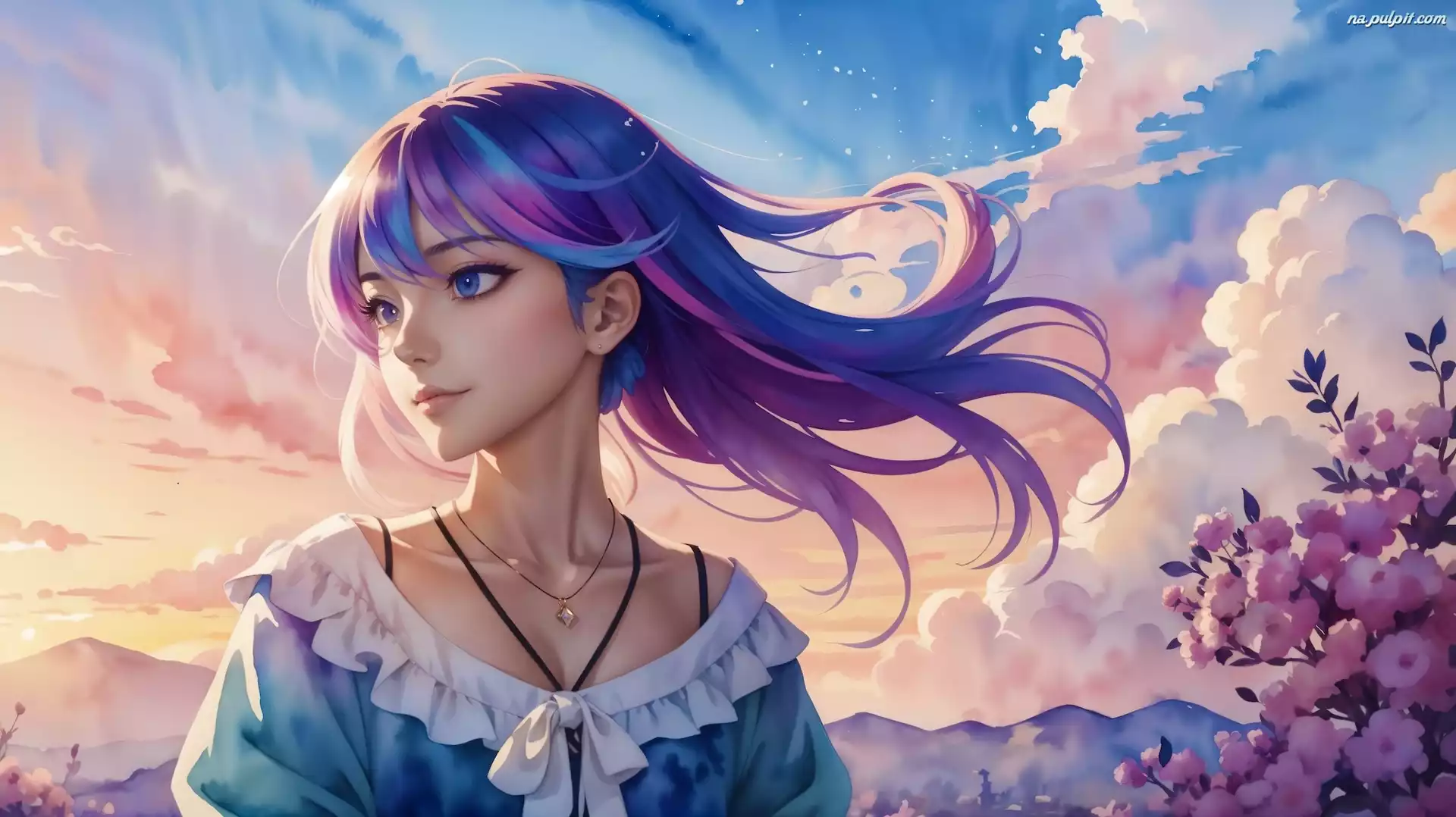 Włosy, Grafika, Dziewczyna, Rozwiane, Kwiaty Na Pulpit