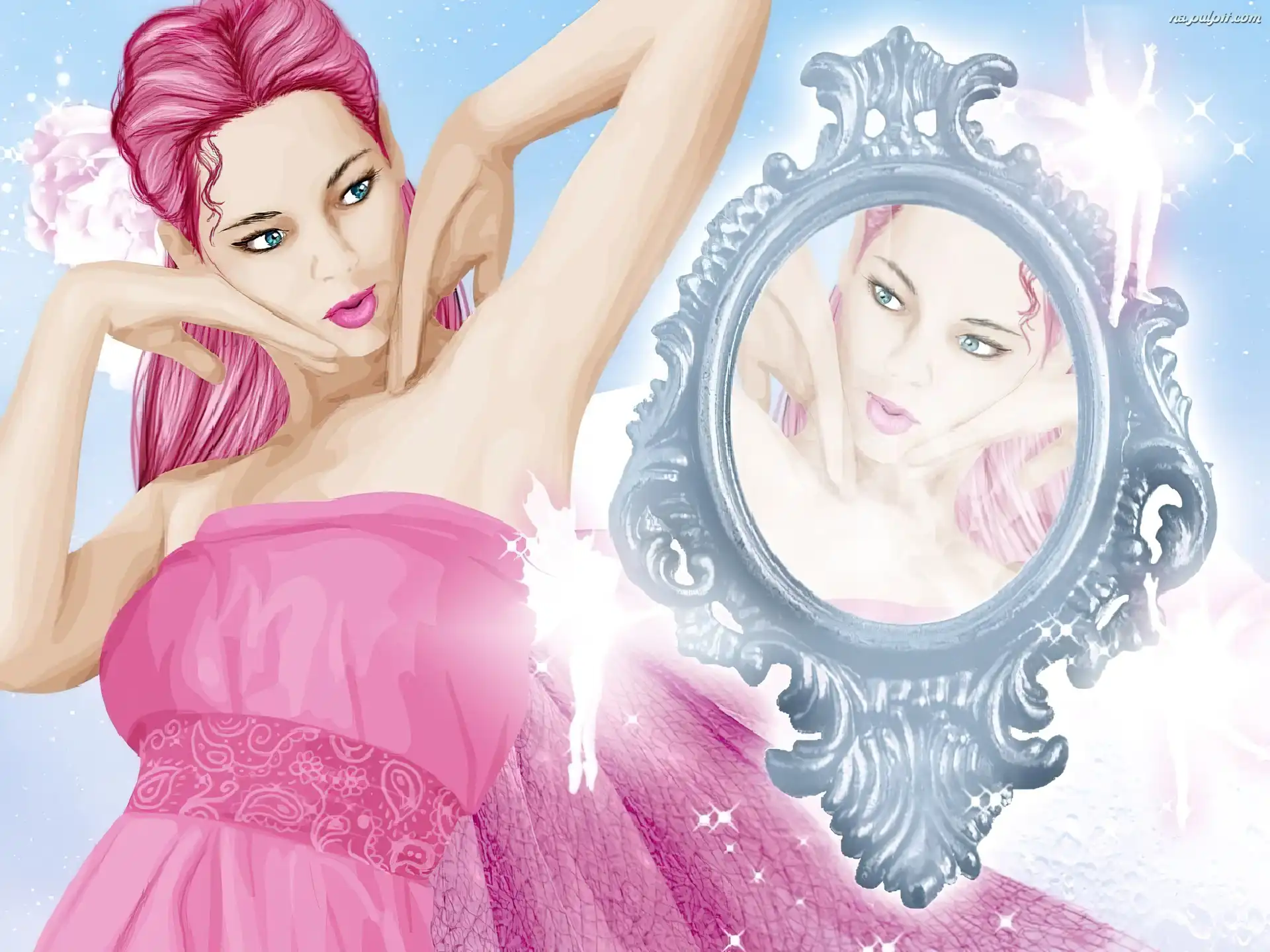 Grafika, Przed, Dziewczyna, Lustrem Na Pulpit