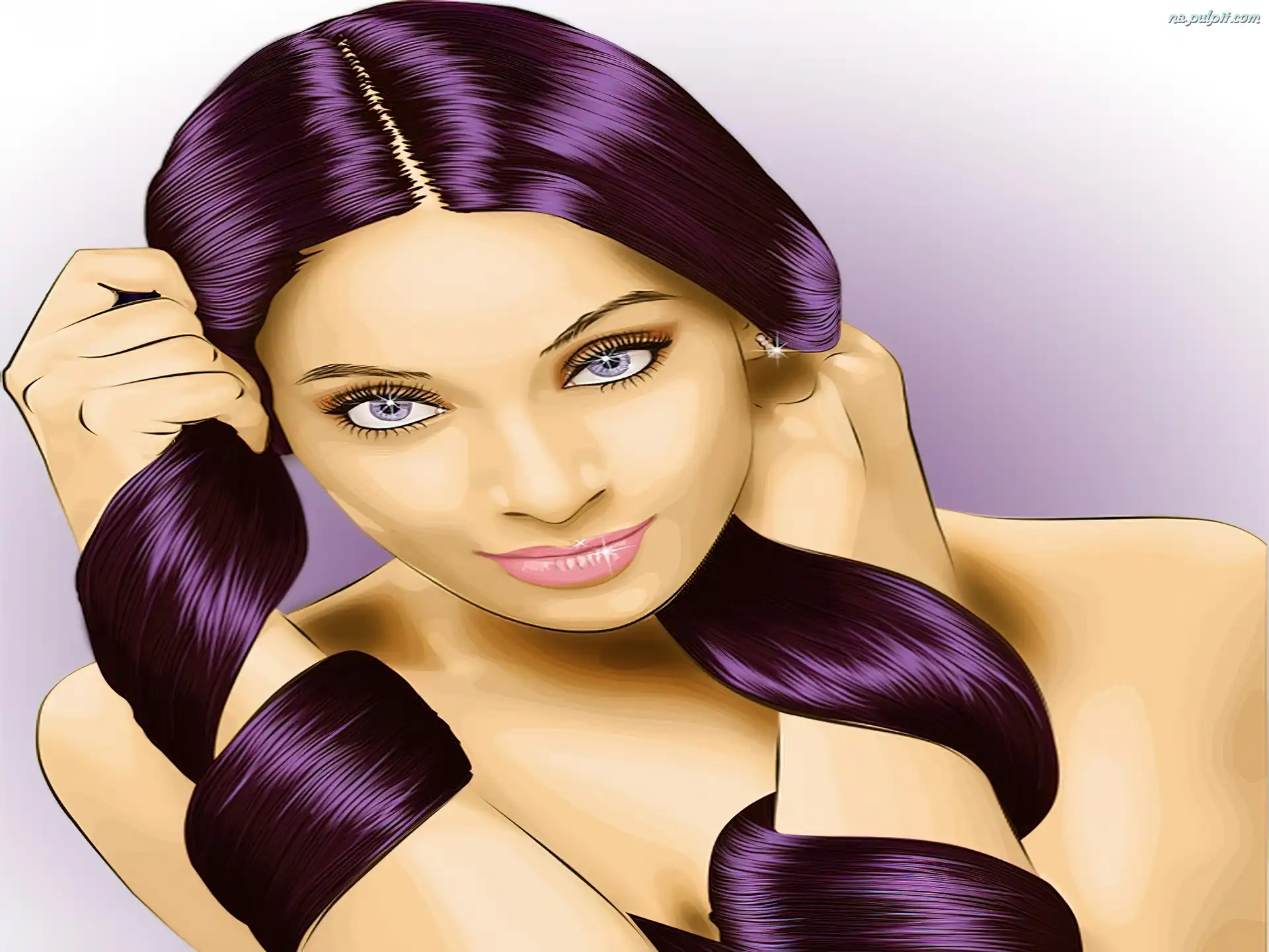 Grafika, Purpurowe, Dziewczyna, Włosy Na Pulpit