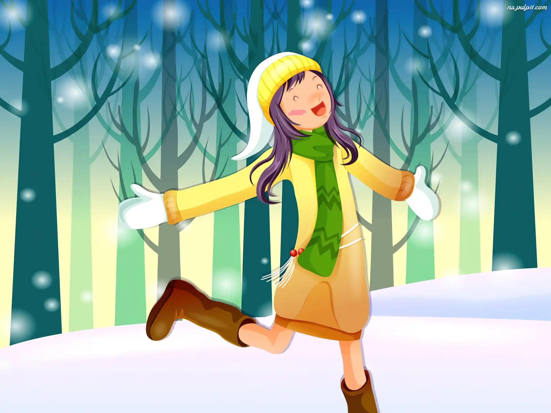 Grafika, Radość, Dziewczyna, Zima Na Pulpit
