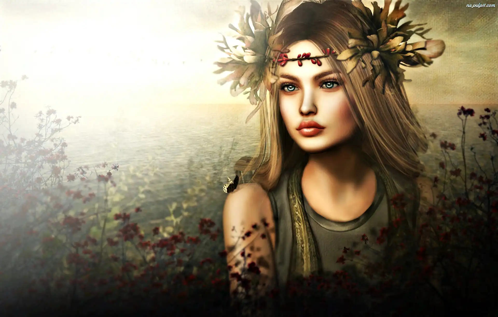Grafika, Liście, Wianek, Dziewczyna, Jesień Na Pulpit