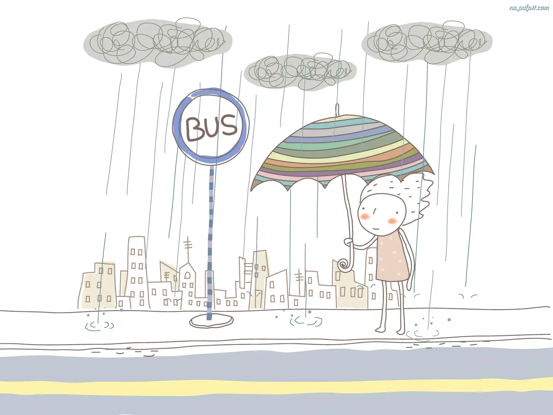 Dziewczynka, Deszcz, Przystanek, Grafika