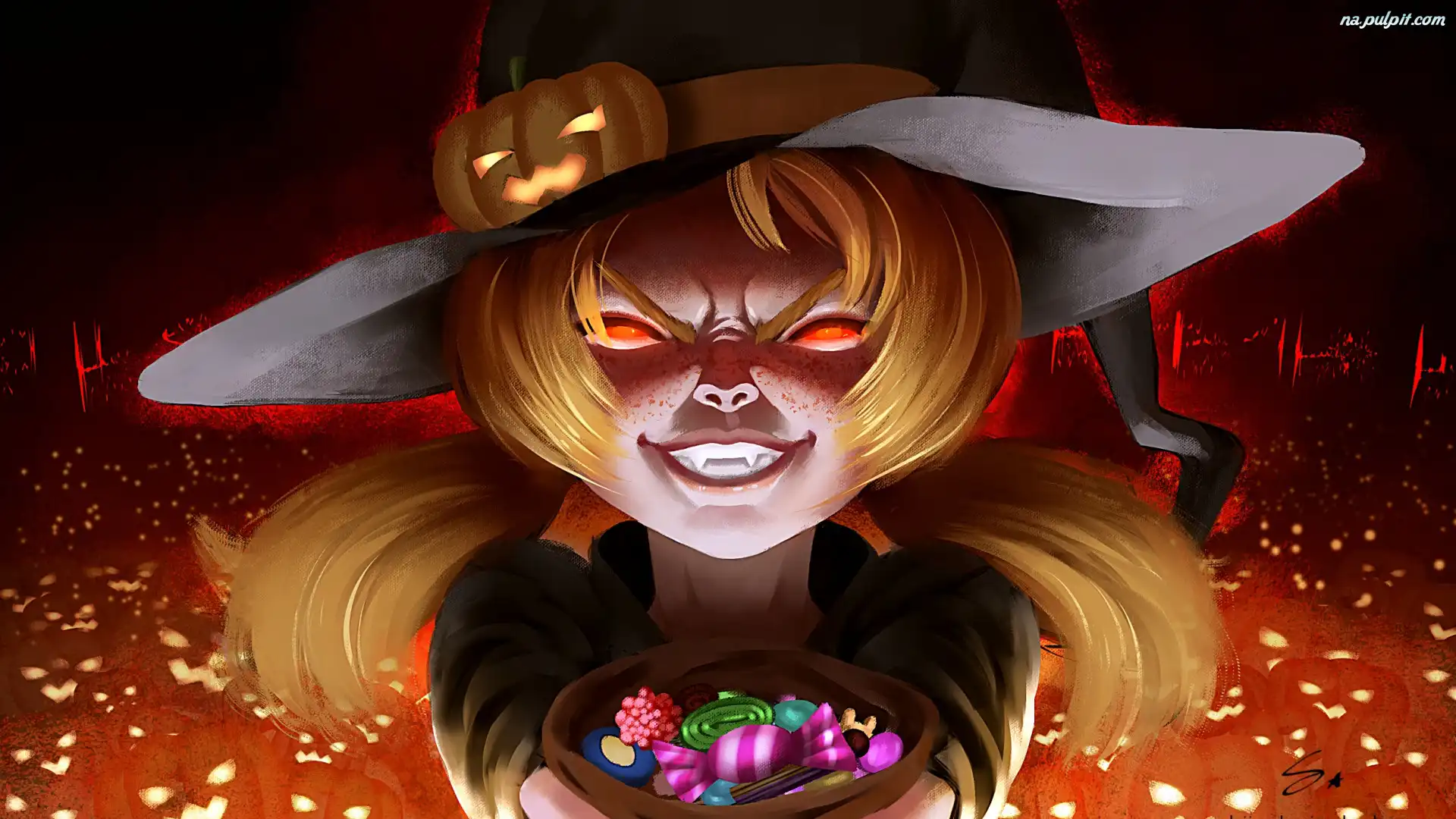 Grafika, Cukierki, Kapelusz, Dziewczynka, Halloween Na Pulpit