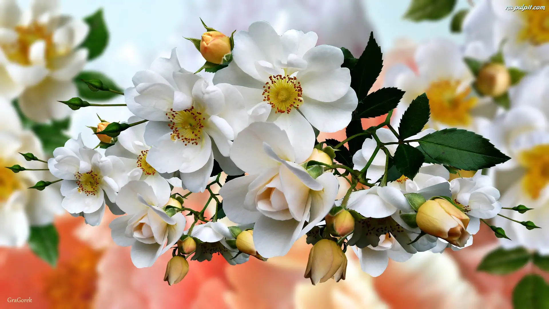 Grafika 2D, Kwiaty, Białe, Dzika róża Na Pulpit