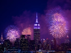 Sylwester, Miasto, Noc, Grafika AI, Fajerwerki