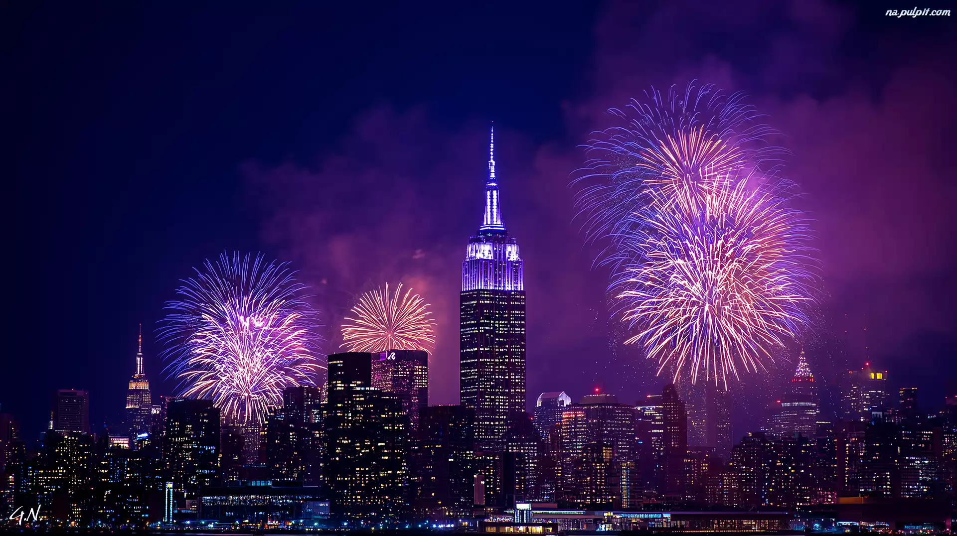 Sylwester, Miasto, Noc, Grafika AI, Fajerwerki Na Pulpit