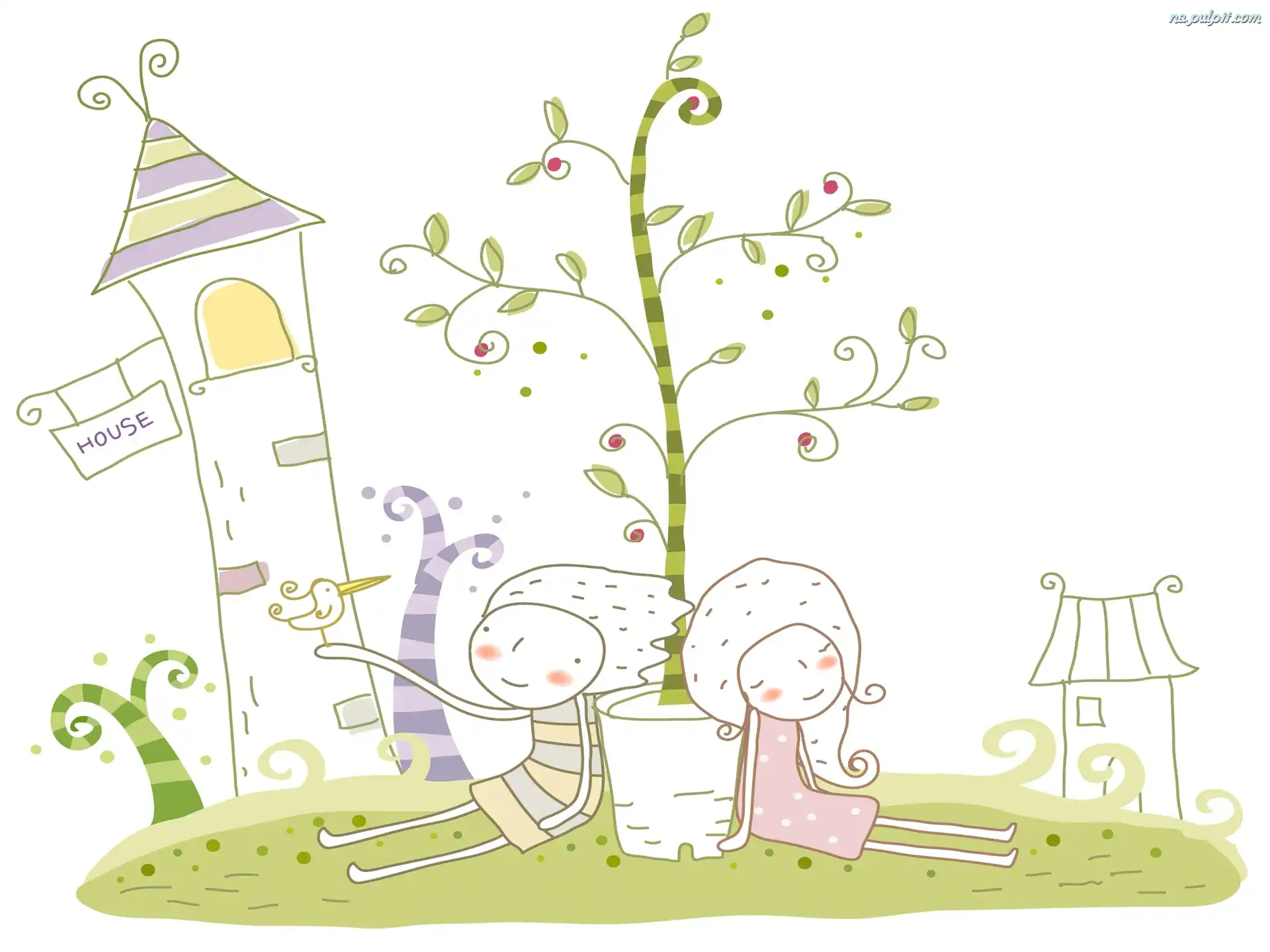 Grafika, Roślinka, Dzieci, Fantasy, Domki