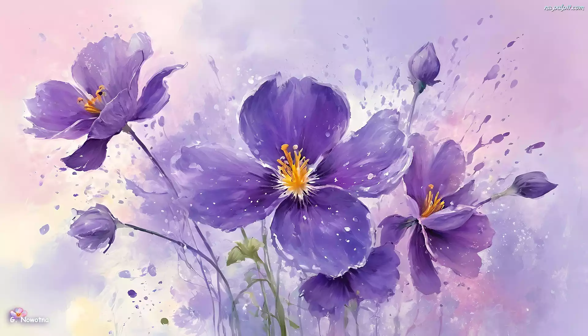 Fioletowe, Kwiaty, Pąki, Grafika Na Pulpit