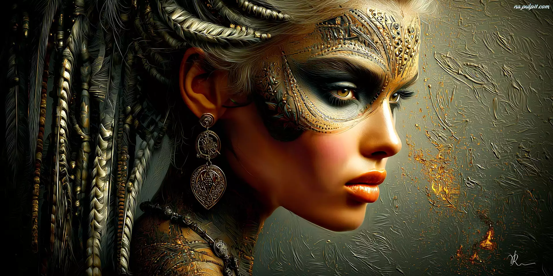 Warkoczyki, Kobieta, Twarz, Grafika AI, Fryzura Na Pulpit