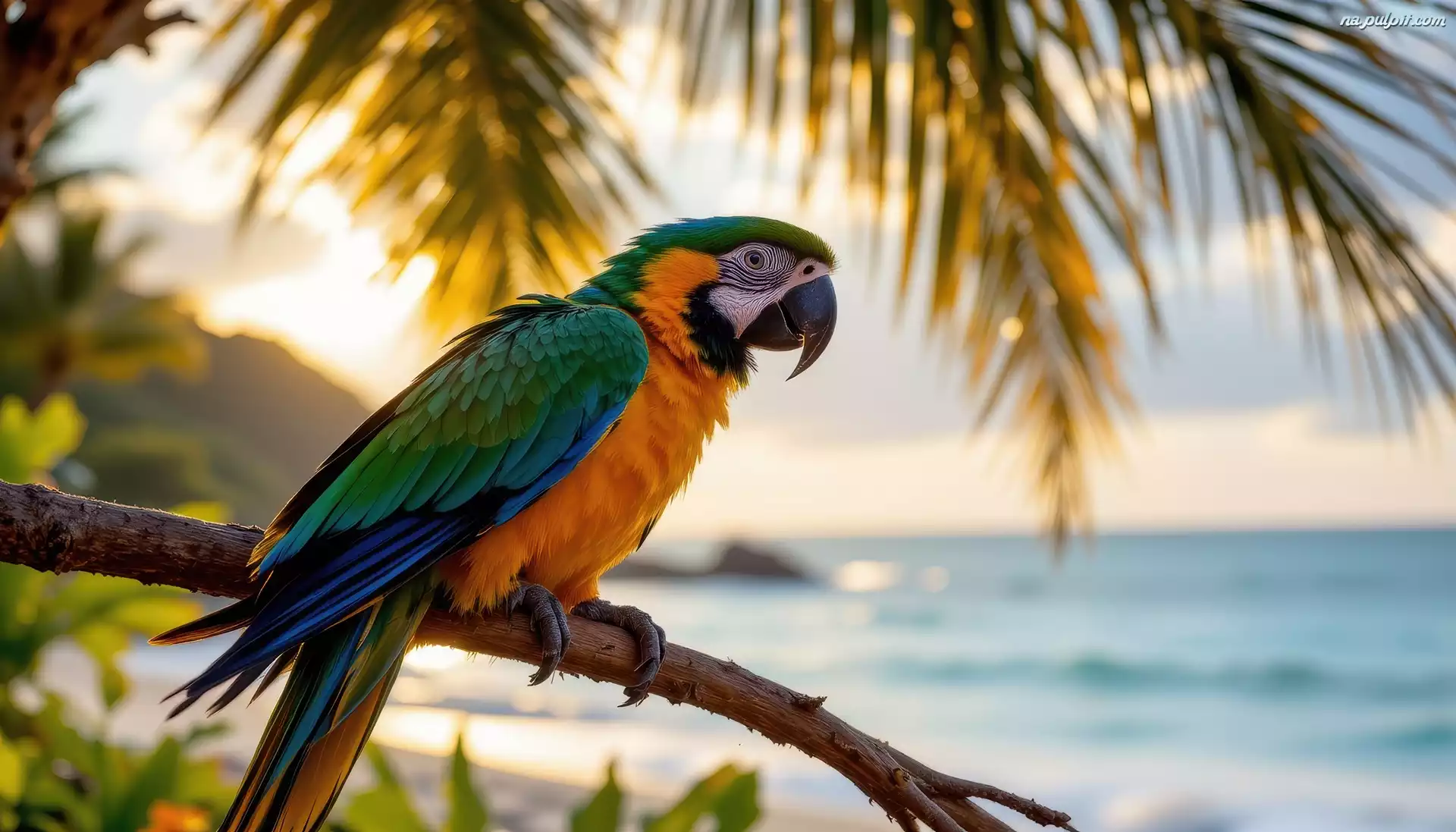 Morze, Papuga, Ara, Grafika AI, Gałąź Na Pulpit