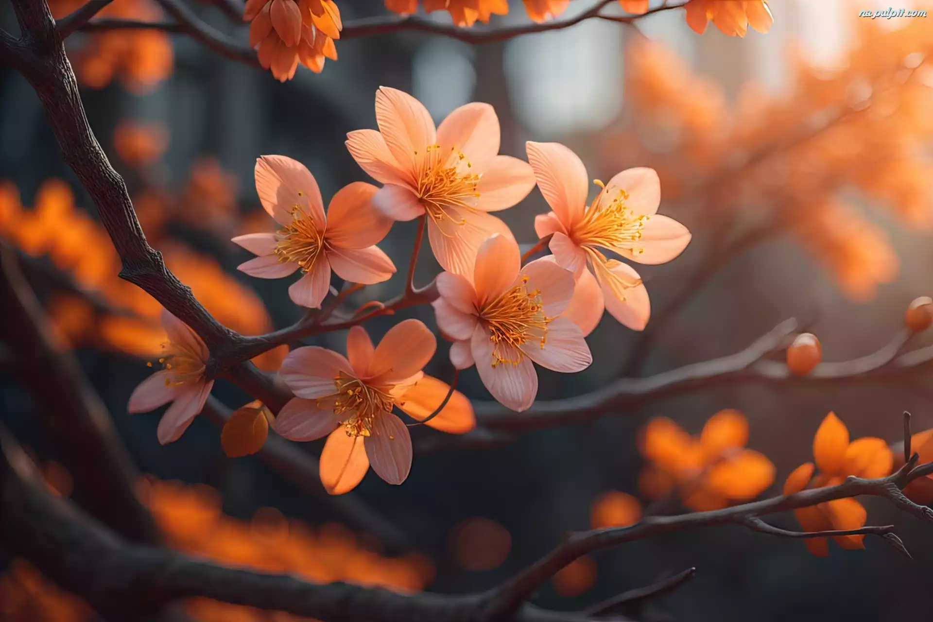 Gałązki, Rozświetlone, Kwiaty, Grafika Na Pulpit