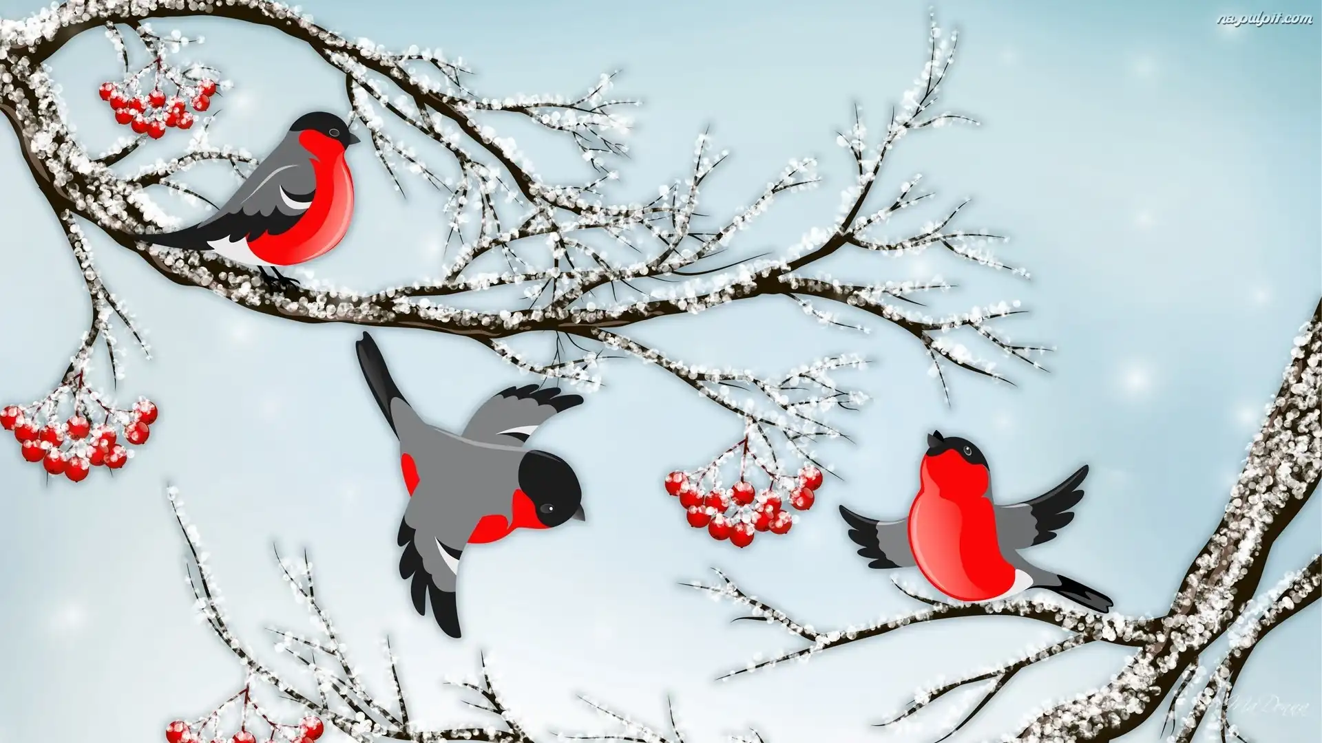 Grafika 2D, Gałązki, Gile, Jarzębina Na Pulpit
