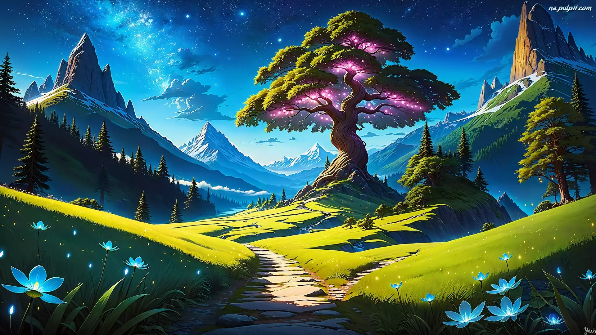 Ścieżka, Grafika, Góry, Kwiaty, Drzewa Na Pulpit