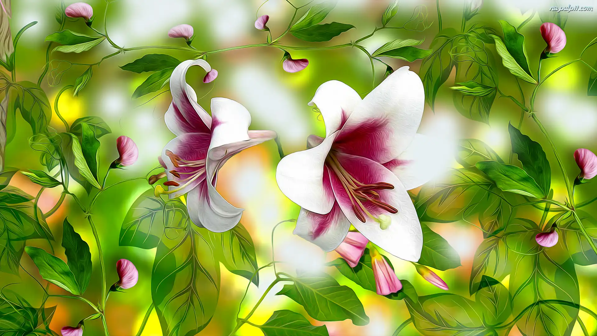 Grafika, Lilie, Kwiaty, Groszek pachnący Na Pulpit