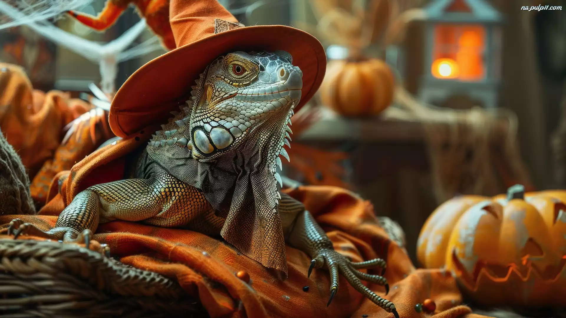 Dynia, Legwan, Kapelusz, Grafika AI, Halloween