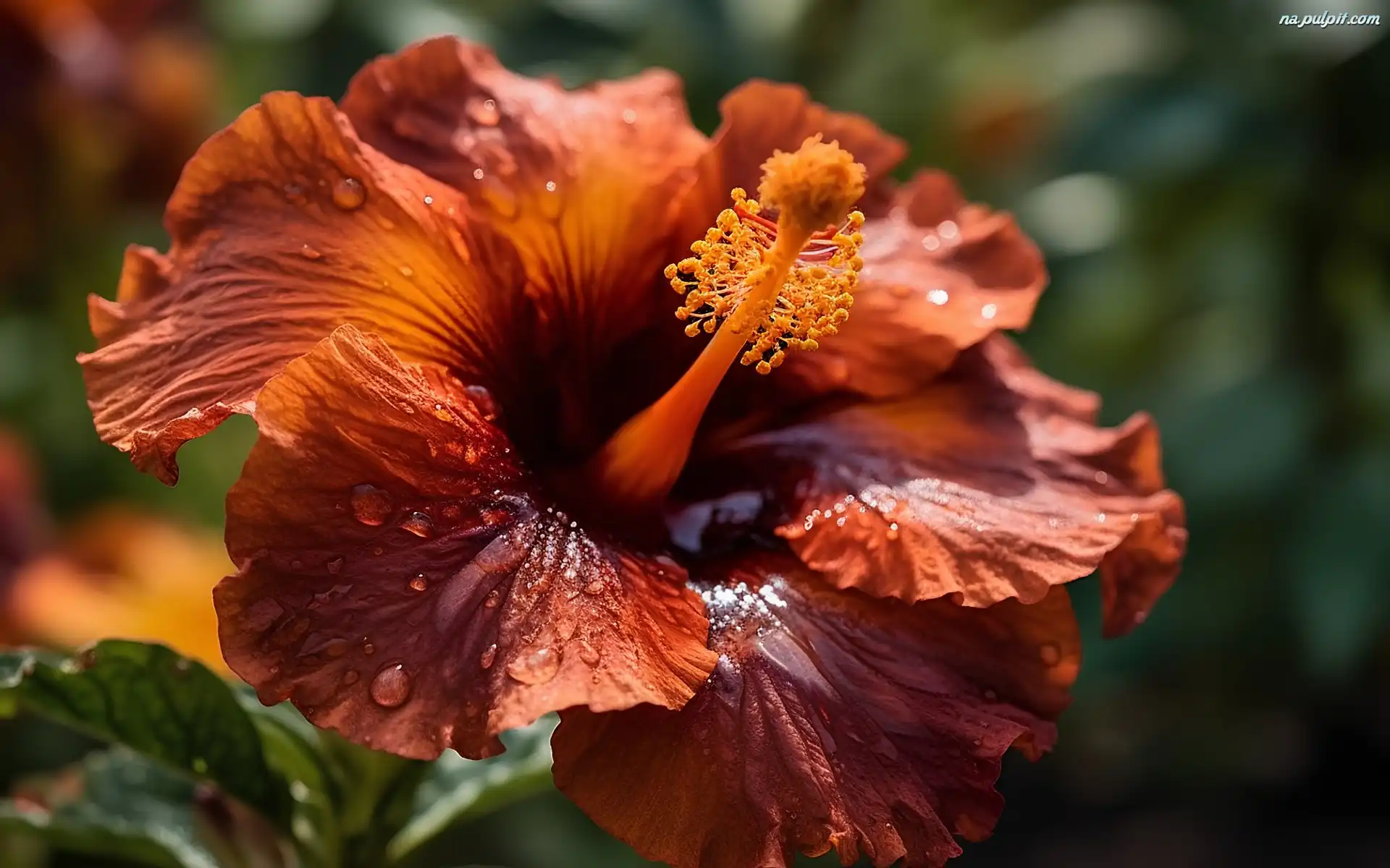 Hibiskus, Kwiat, Krople, Grafika Na Pulpit