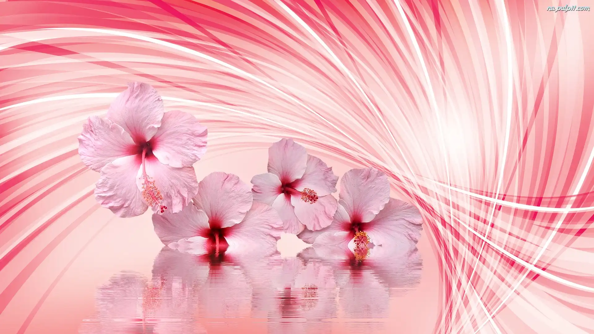 Grafika 2D, Woda, Kwiaty, Hibiskus, Odbicie Na Pulpit