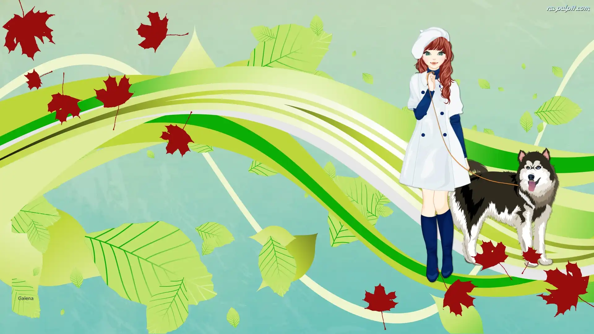Grafika, Kobieta, Liście, Jesień, Kobieta Na Pulpit