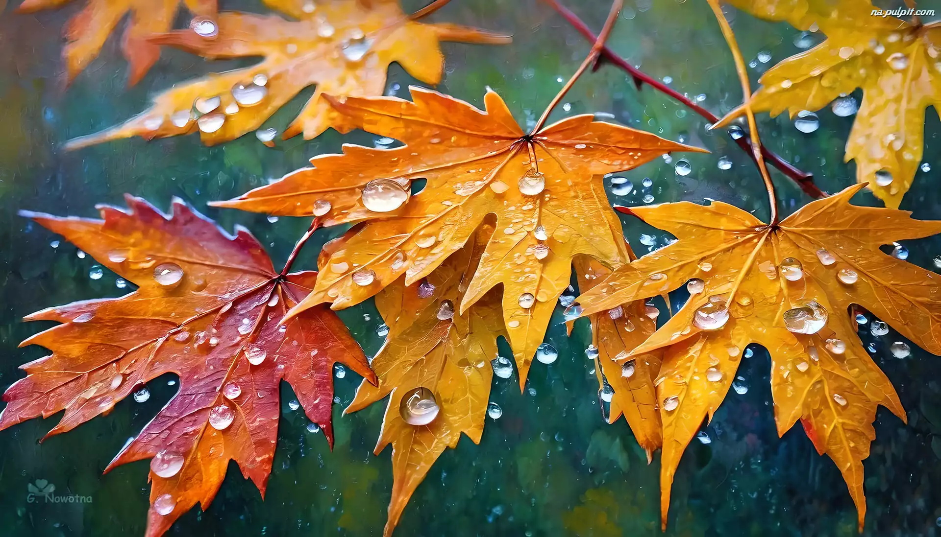 Jesienne, Liście, Krople, Grafika Na Pulpit