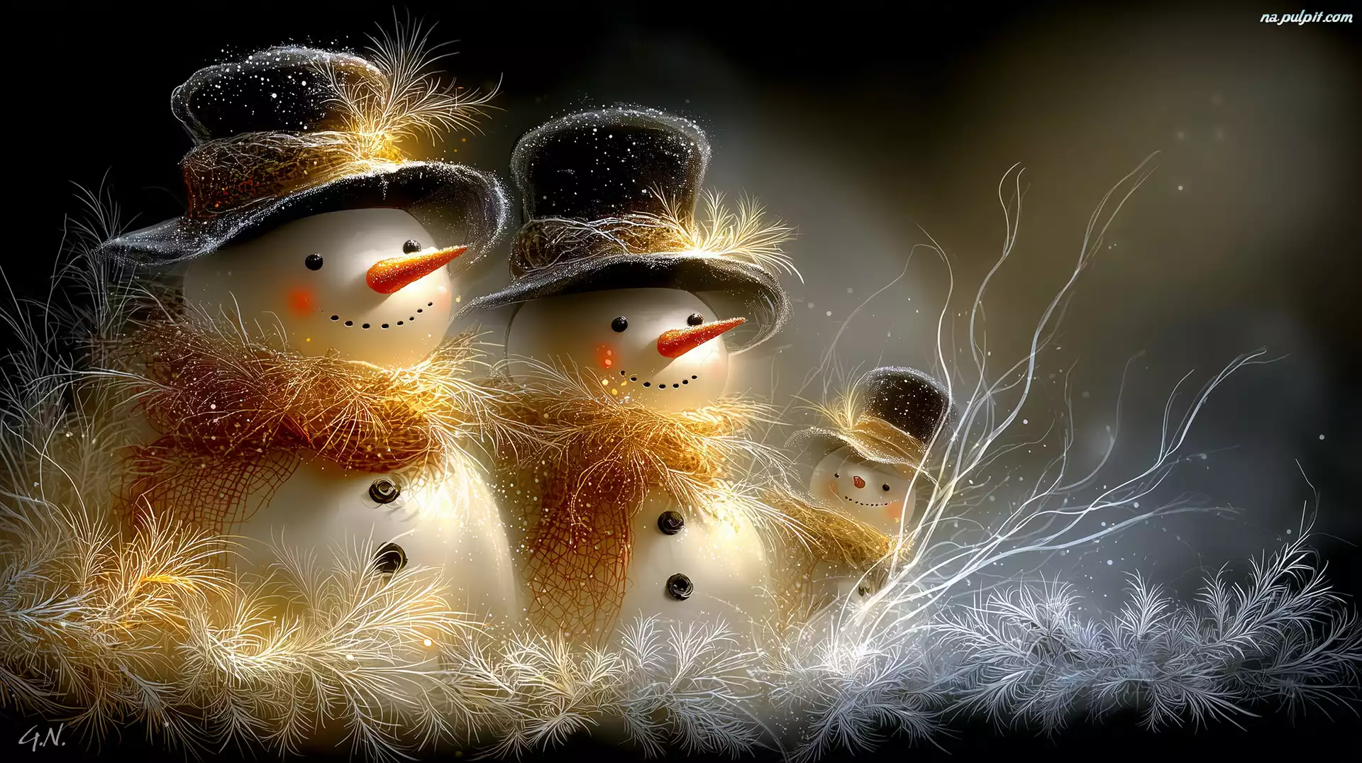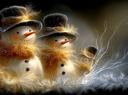 Szaliki, Trzy, Bałwanki, Grafika AI, Kapelusze Na Pulpit