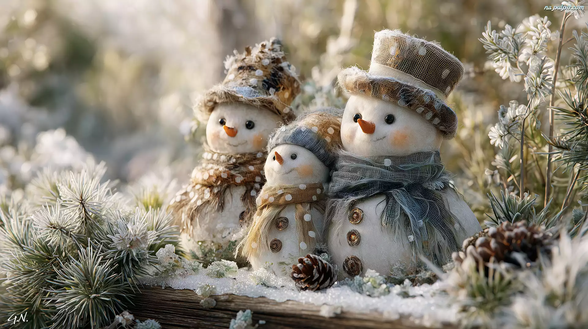 Szaliki, Trzy, Bałwany, Grafika AI, Kapelusze Na Pulpit