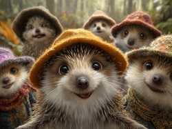 Selfie, Jeże, Wełniane, Grafika AI, Kapelusze Na Pulpit