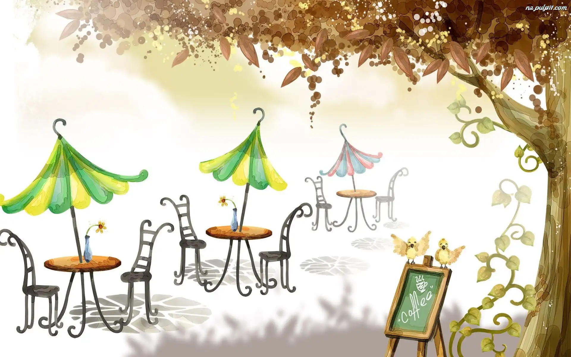 Grafika, Pod, Kawiarenka, Drzewem