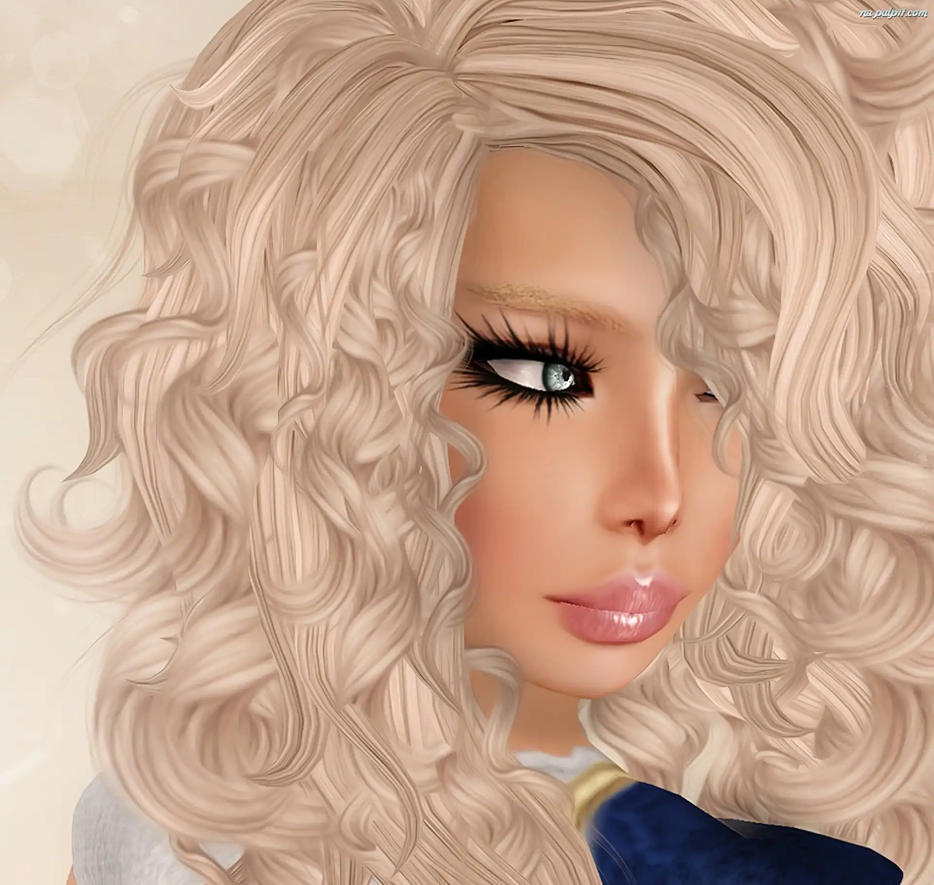Grafika, Kręcone, Blondynka, Kobieta, Włosy