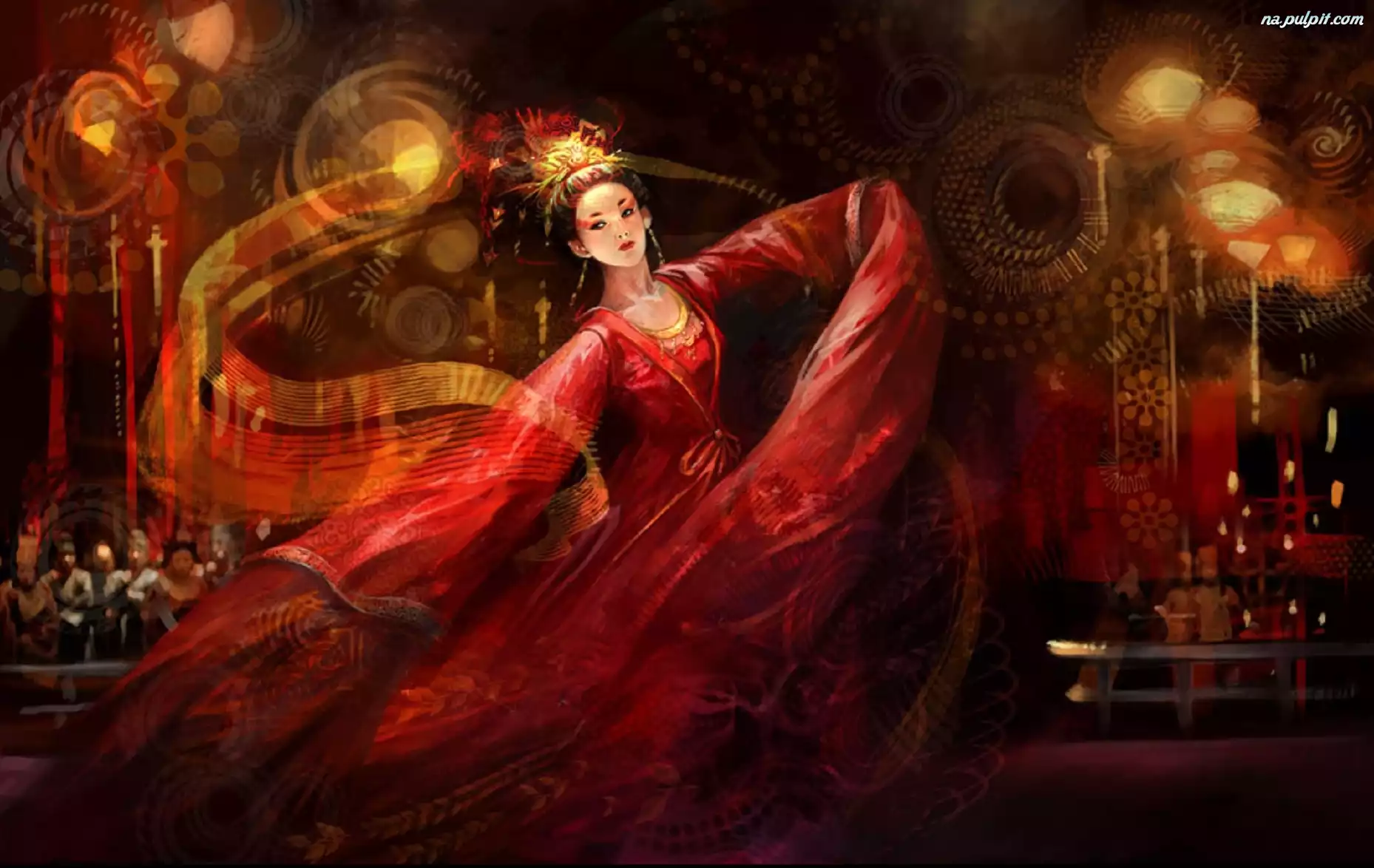 Grafika, Czerwona, Kobieta, Suknia Na Pulpit