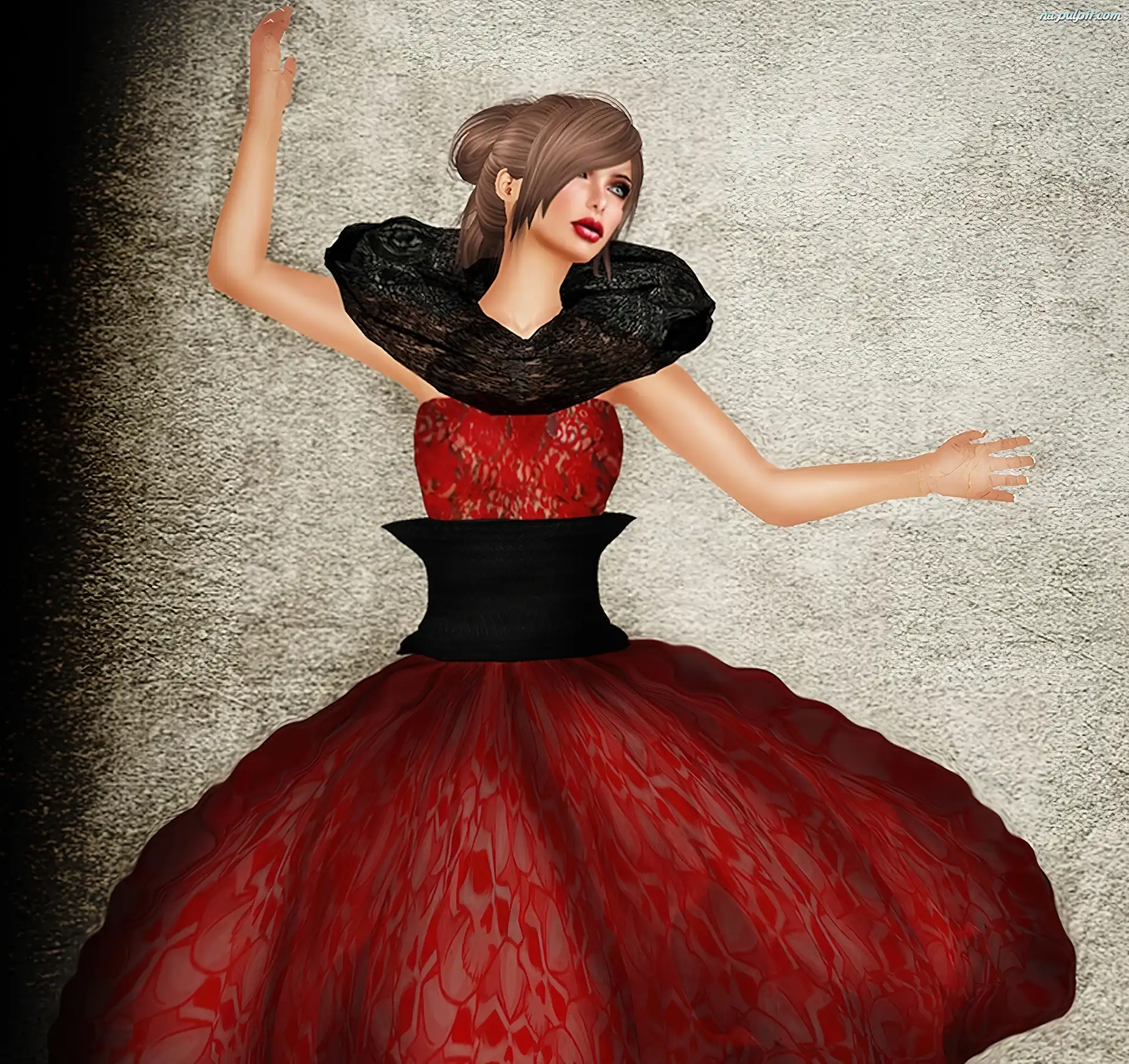 Grafika, Suknia, Czerwona, Kobieta, Taniec