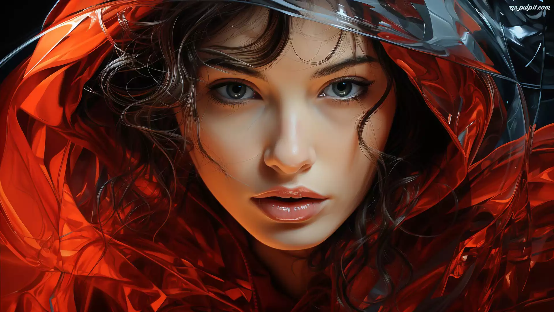Kobieta, Spojrzenie, Kaptur, Grafika Na Pulpit