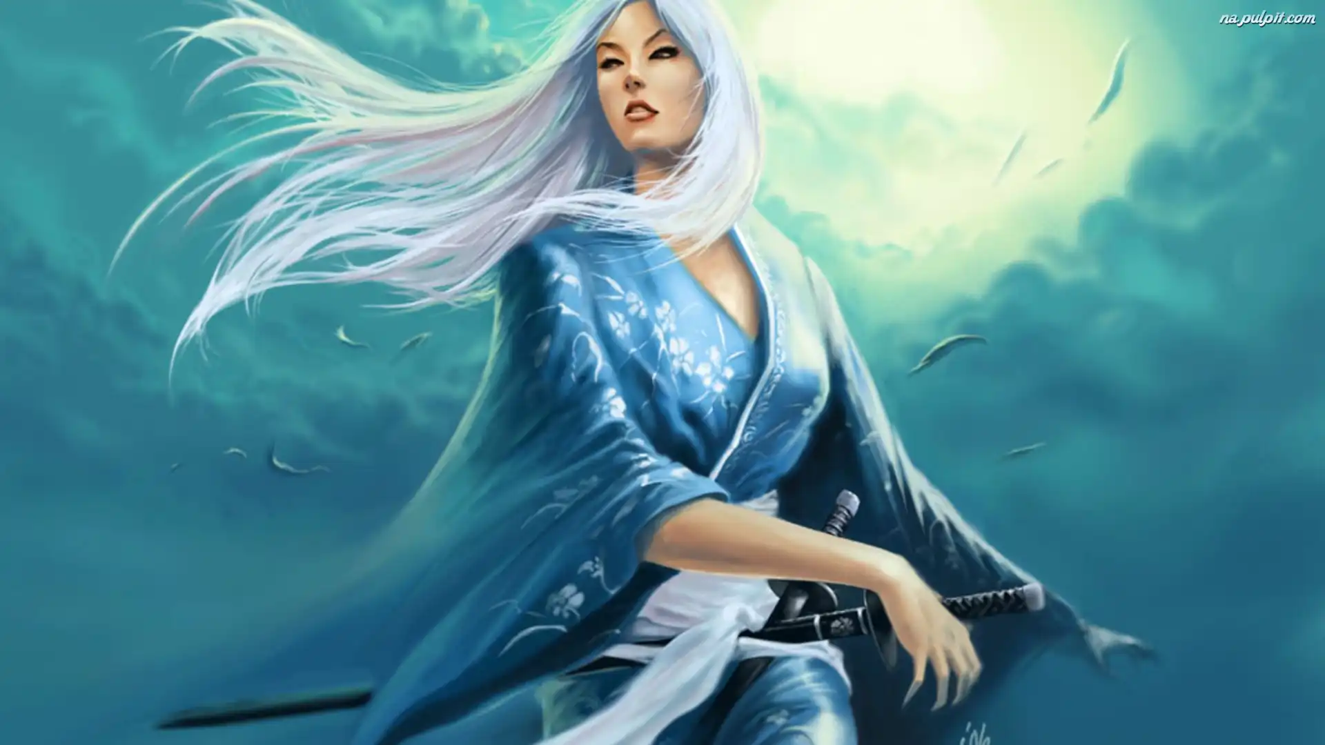Grafika, Kimono, Kobieta, Miecze Na Pulpit